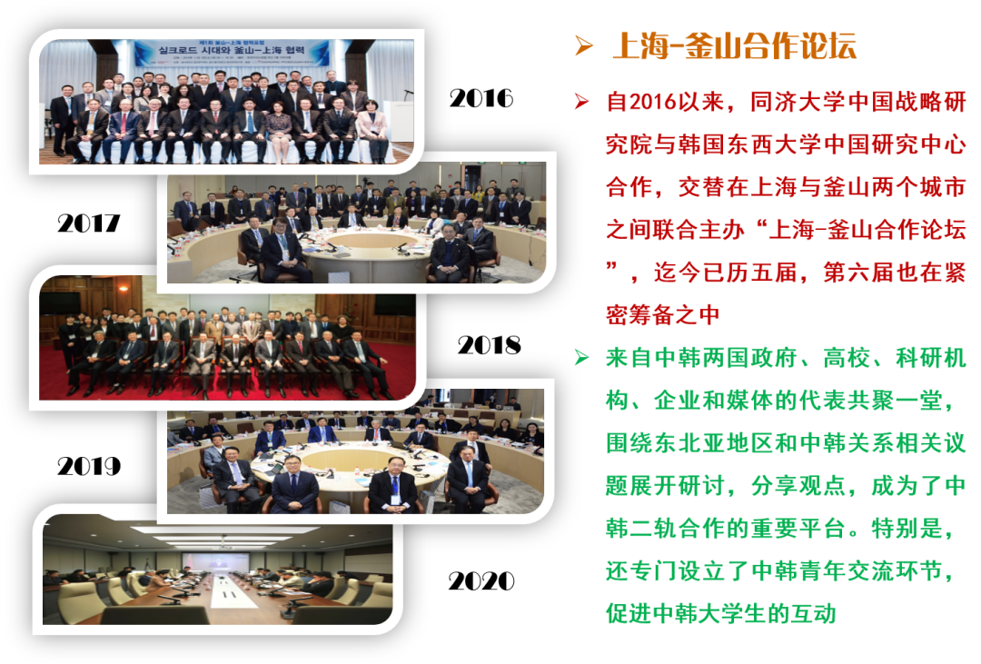 依托同济大学中国战略研究院、同济大学国家现代化研究院等高端智库平台,更新或创设了4个教育部国别和区域研究备案中心——同济大学亚洲太平洋研究中心、同济大学韩国研究中心、同济大学欧洲研究中心、同济大学极地与海洋国际问题研究中心。另设有比较政治研究中心、中国学研究中心等科研机构,确立以战略研究为核心、以亚洲研究和欧洲研究为重点的“一体两翼式”开放研究格局。