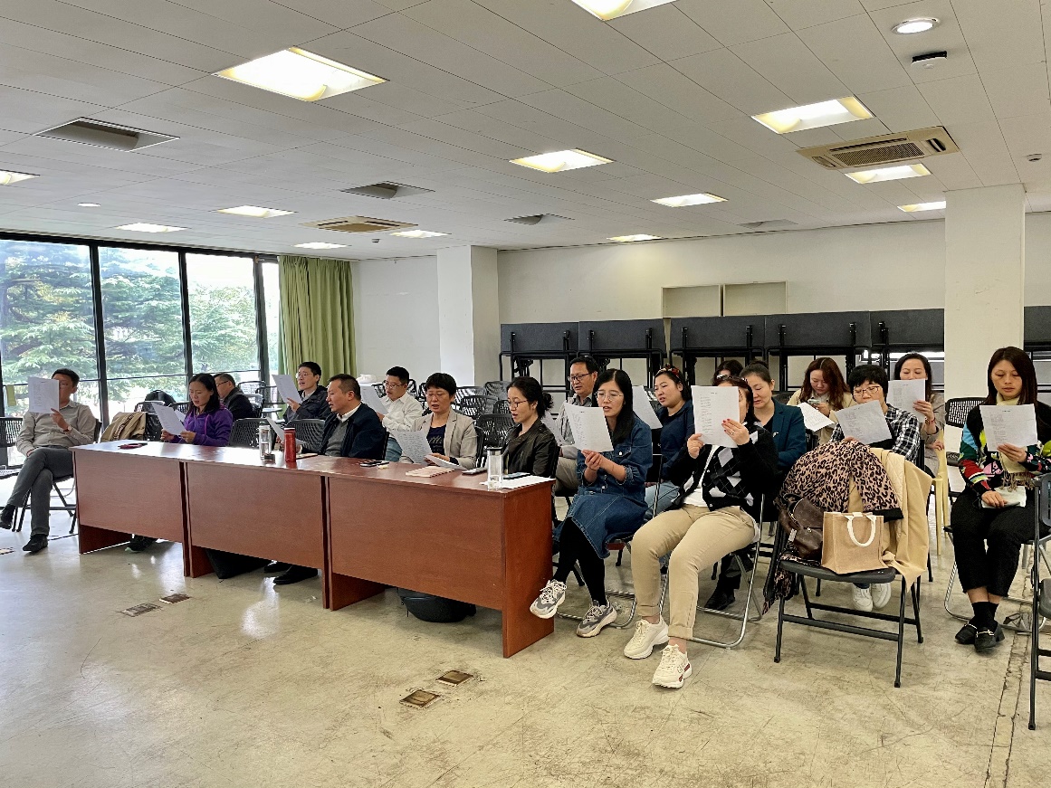 2021年10月19日,学院党委组织“国政教师红歌艺术赏学社”全体成员,在中法中心举办了一次中宣部主推的红色歌曲“万疆”的教唱活动,邀请我院大四学生、校学生合唱团团长欧华轩同学指导老师们学唱。
