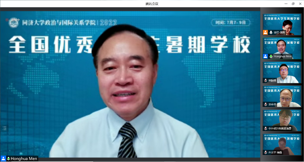 最后,门洪华教授介绍了本次暑期学校的日程安排,期待各位学员都有优异表现,期望学员们通过本次暑期学校走近同济大学星空足球,了解学科前沿,体验科研魅力,收获同侪友谊。门洪华教授热情欢迎学员们在疫情结束后到同济大学进行交流和学习,期待着各个学员与同济的缘分长长久久!