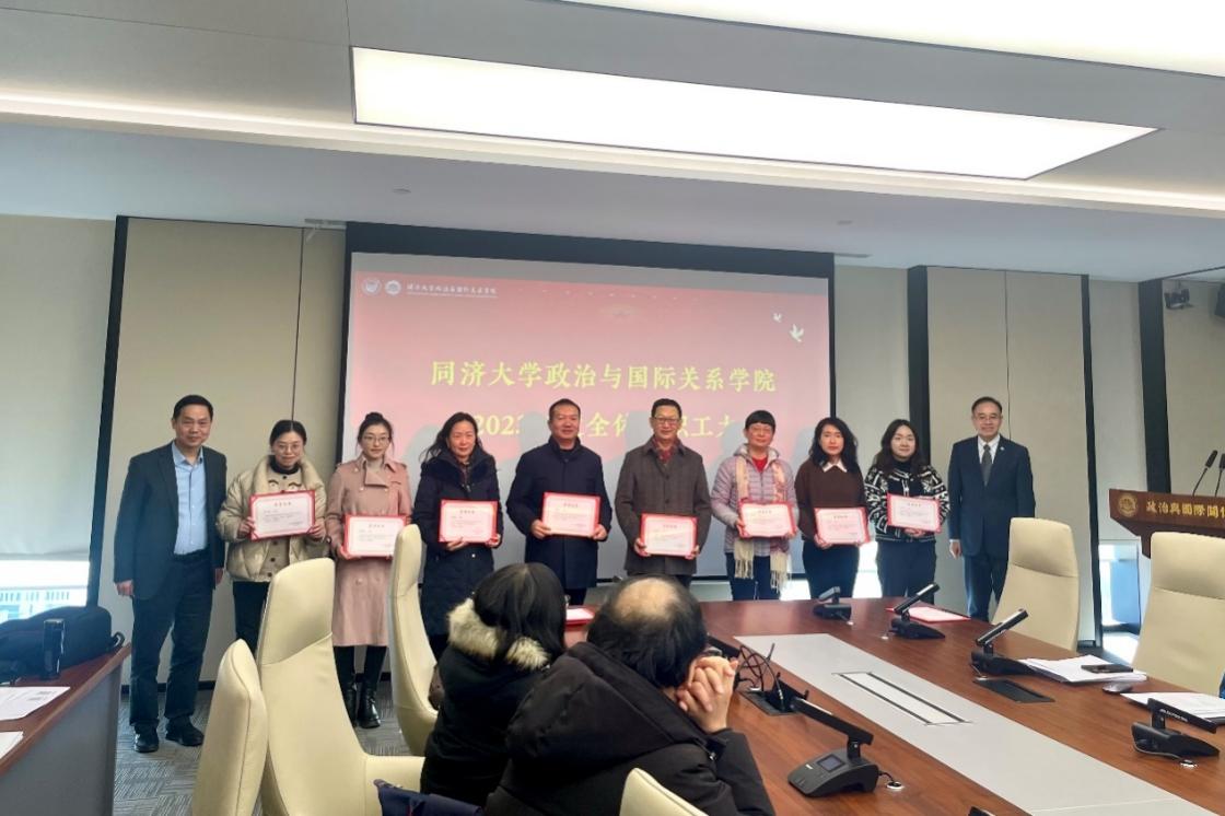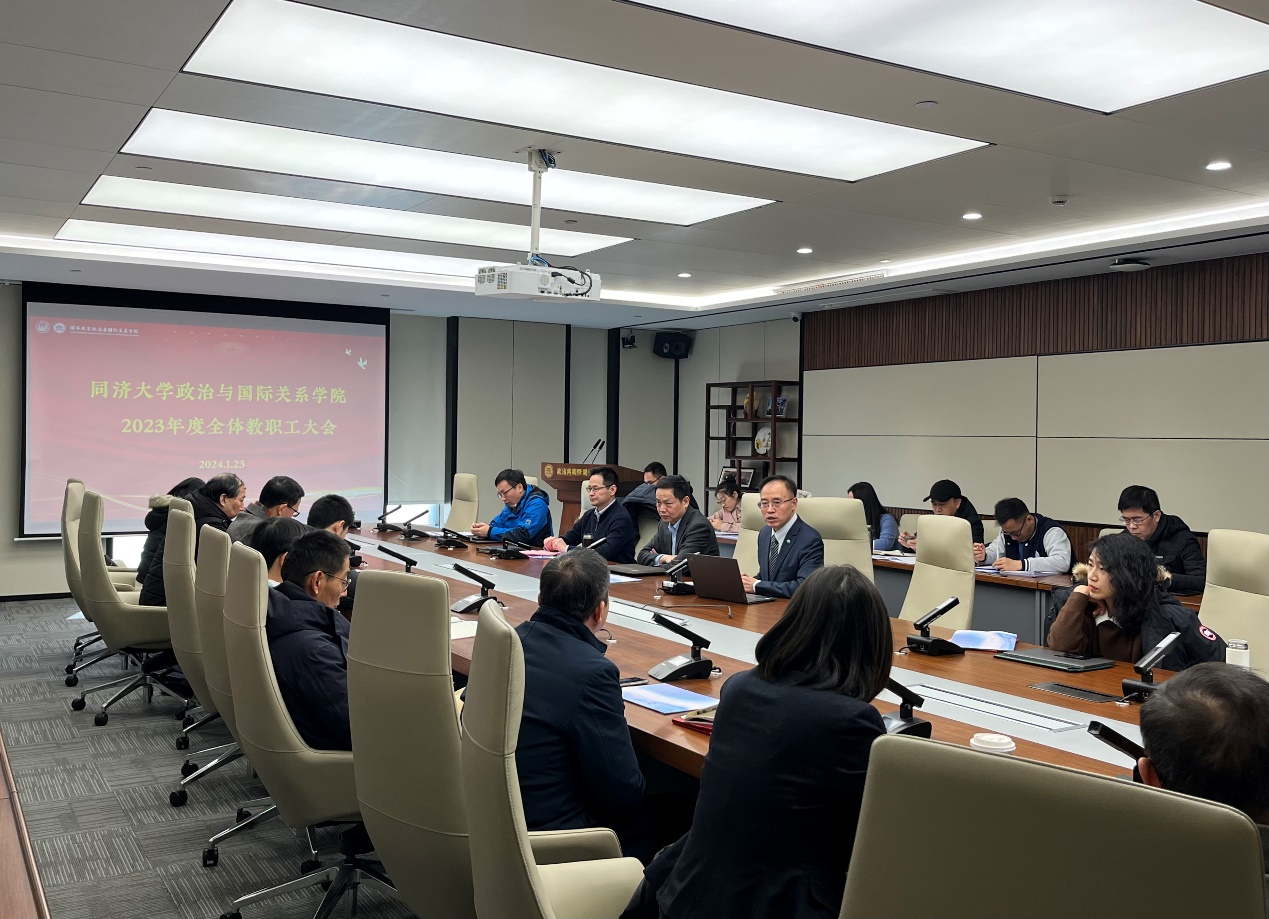 门院长从八个方面介绍学院2023年工作进展情况。一是高质量推进党建工作,深化和丰富基层党支部内涵建设。学院党委认真学习贯彻习近平新时代中国特色社会主义思想和党的二十大精神,高质量开展党建工作。学院党委认真开展习近平新时代中国特色社会主义思想主题教育,高质量完成“立德树人”专项巡视整改工作。学院党委认真贯彻基层组织工作条例,推进党支部标准化规范化建设。致力于加强师德师风建设,弘扬优良教风学风。扎实推进实践研学活动,积极拓展基层治理服务平台。学院获得“同济大学三全育人示范学院”称号。二是坚持立德树人,提升本研教学质量和人才培养成效。学院“双万计划”顺利收官,政治学与行政学(含国际政治)国家一流本科专业建设稳步推进,门洪华教授主讲的“中国国际战略导论”获批国家级一流本科课程,徐红教授主讲的“比较政治制度”获批上海市一流本科课程。政治学与行政学专业(含国际政治方向)与德语专业共同申报的双学士学位项目获批并纳入学校招生计划。学院顺利完成教育部本科教育教学审核各项要求。学院与青海省的合作稳步推进。研究生教育教学状态考核结果继续位居全校前10名。同济大学政治学学位授权点全票通过国务院学位办政治学学科评议组的核验。三是以党建为引领,深化学生工作,全方位助推学生成才。学院以党建为引领,强化学生理想信念教育。围绕学习习近平新时代中国特色社会主义思想开展主题教育,鼓励青年深入社会基层、实地调查了解国情。加强管理服务,不断提升育人成效。2019级团支部荣获2023年上海高校活力团(总)支部等荣誉称号。学院不断完善贯通式的学生发展生涯教育体系,提升学生就业质量。四是巩固科研重点方向,组织高端学术活动,科研成果稳中有进。学院持续开展与重要合作伙伴的高端论坛。第五届中国战略论坛暨“新时代新征程上的中国特色大国外交”高端研讨会、“百年变局加速演进下的国际关系与中国外交”学术研讨会、第二届上海市国际关系研究博士生论坛——“十字路口下的世界与中国”、“全球南方与国际关系理论创新”两岸学术研讨会、上海市政治学会2023年年会暨“中国式现代化探索:国家治理与全球治理的互动”学术研讨会在同济大学成功举办。学院持续举办“同济社会科学前沿讲座”近30场,邀请学界精英开坛设讲。2023年,学院新增国家级基金课题10项,师生持续发表CSSCI和SSCI期刊论文,多项成果获得上海市第十六届哲学社会科学优秀成果奖。五是持续深化部委制度化合作,积极对接国家战略需求。学院积极对接国家战略需求,积极提交决策咨询报告,其中数篇师生撰写的咨询报告获得中央主要领导人的肯定性批示。学院继续加强与部委的制度化合作,持续承担其委托的年度课题和紧急课题。中央网信办-教育部网络空间国际治理研究基地受邀参与承办2023年度世界互联网大会“网络空间国际规则:实践与探索”分论坛。学院新增获批教育部APEC联合研究院。六是外事工作灵活创新,为国际交流注入新活力。2023年,学院积极拓展欧亚美交流,推动国际化全球布局初步形成。学院在国际学生招生等关键指标上持续位居全校专业学院前列。学院获得硕士全英语专业和全英语课程建设项目立项资助。学院与韩国东西大学中国研究中心联合主办第八届上海-釜山合作论坛,与日本佳能全球战略研究所合作举办第四届中日经济战略对话,稳步推进国际交流。七是外引内育,学院人才队伍加速优化,学院发展基础稳固。学院多名教师入选国家级和上海市人才工程。八是持续强化制度建设,提升学院治理水平,师德师风建设取得扎实成效。学院新制定党建、教学管理、学生管理等领域的多项制度规定,获批“同济大学依法治校示范学院”。