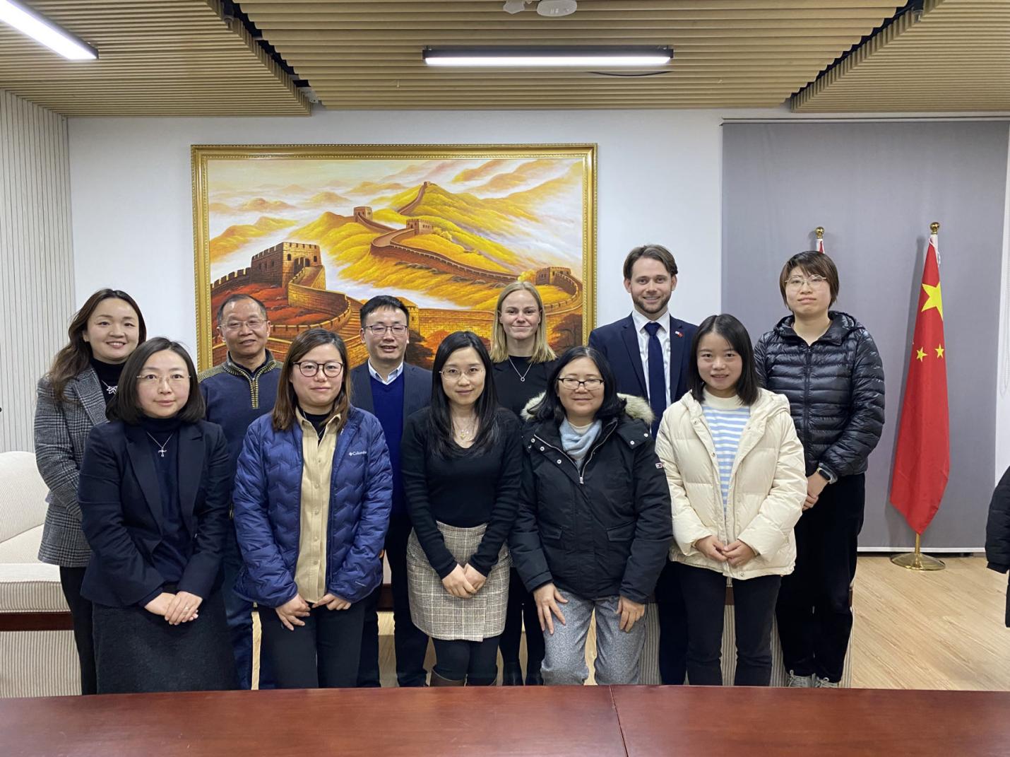 2024年1月24日,英国驻华大使馆二等秘书高薇(Evie Gould)、英国驻上海总领事馆政治领事葛杰明(Benjamin Griffin)、高级政策专员钟子娟以及访问支持专员陆文琳一行来到同济大学,拜访同济大学星空足球部分国际研究学者,并就全球治理、多边主义、一带一路、中英合作等国际议题展开交流。