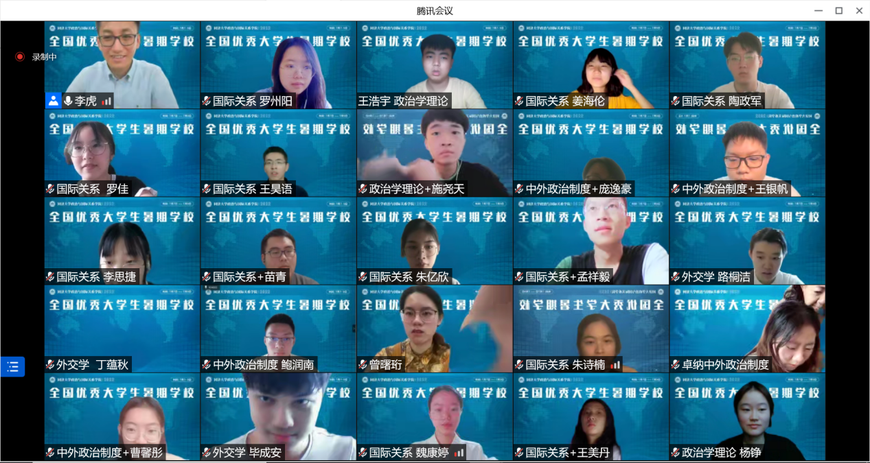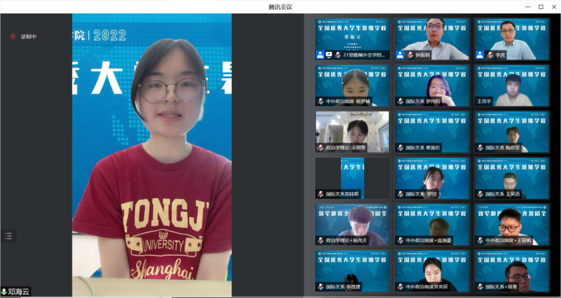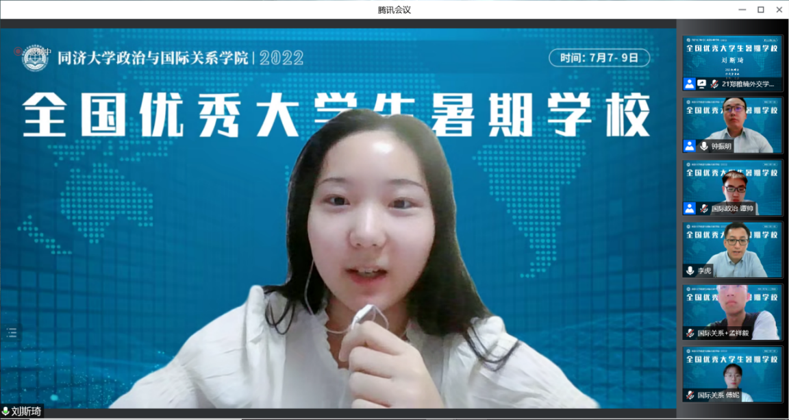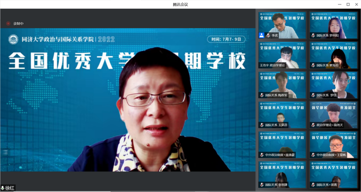 2022年7月9日上午9:00,星空足球2022年全国优秀大学生暑期学校优秀学长学姐见面会暨闭幕式成功举行。会议由同济大学政治与国际关系副院长钟振明教授主持,同济大学星空足球党委书记徐红教授做总结致辞,院长助理兼外交学系主任吕蕊副教授出席了会议。