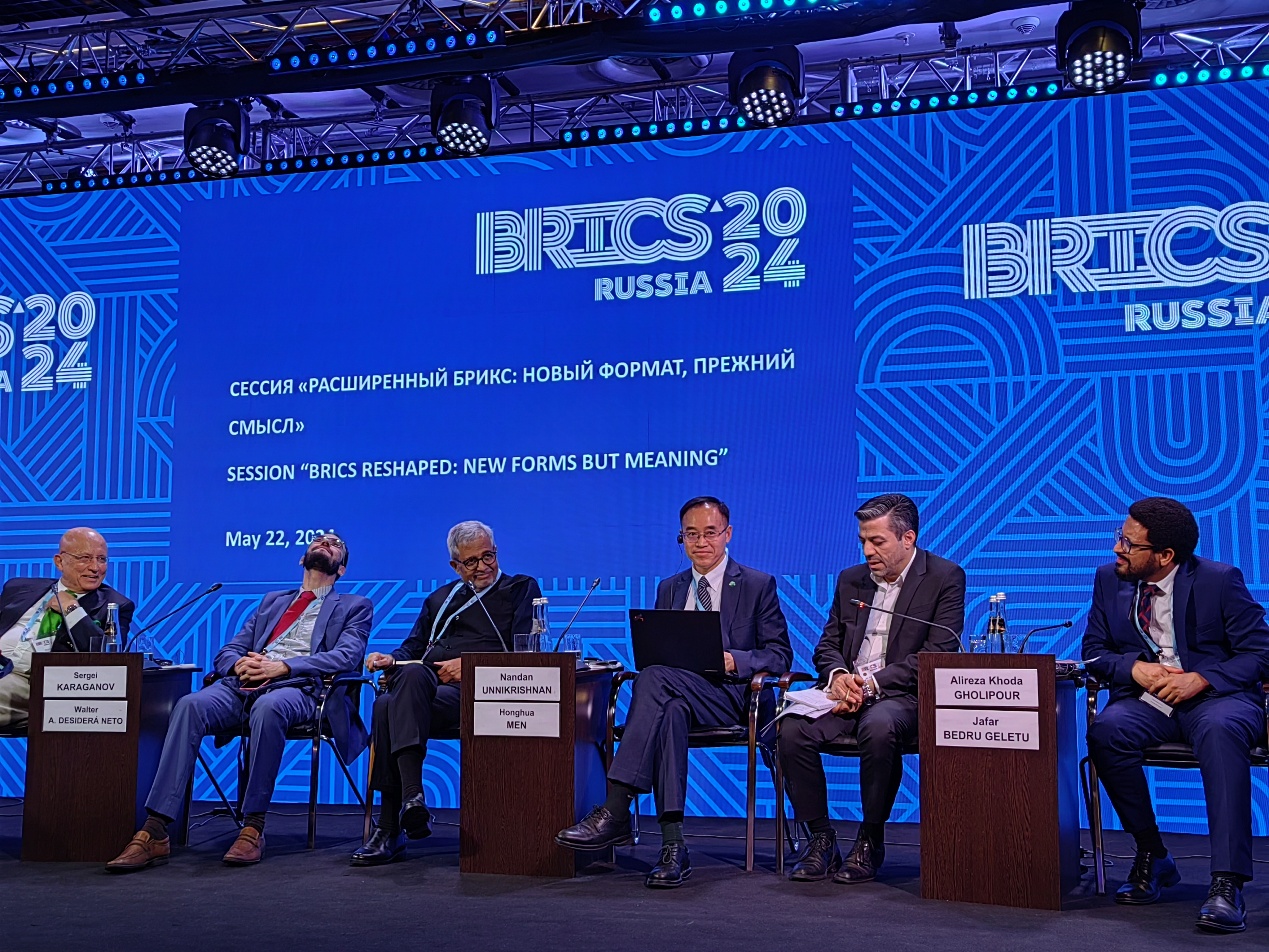 把握世界脉搏,扣准全球南方2024522-24,第十六届金砖国家学术论坛在俄罗斯莫斯科举行,中联部研究室主任、金砖国家智库合作中方理事会秘书长金鑫博士率团与会并发表基调演讲。教育部长江学者特聘教授、同济大学中国战略研究院/星空足球院长门洪华教授应邀出席论坛并在主旨演讲后的“金砖重塑的新形式”第一议题代表中方作《稳步推进金砖重塑的原则与路径》的交流发言。