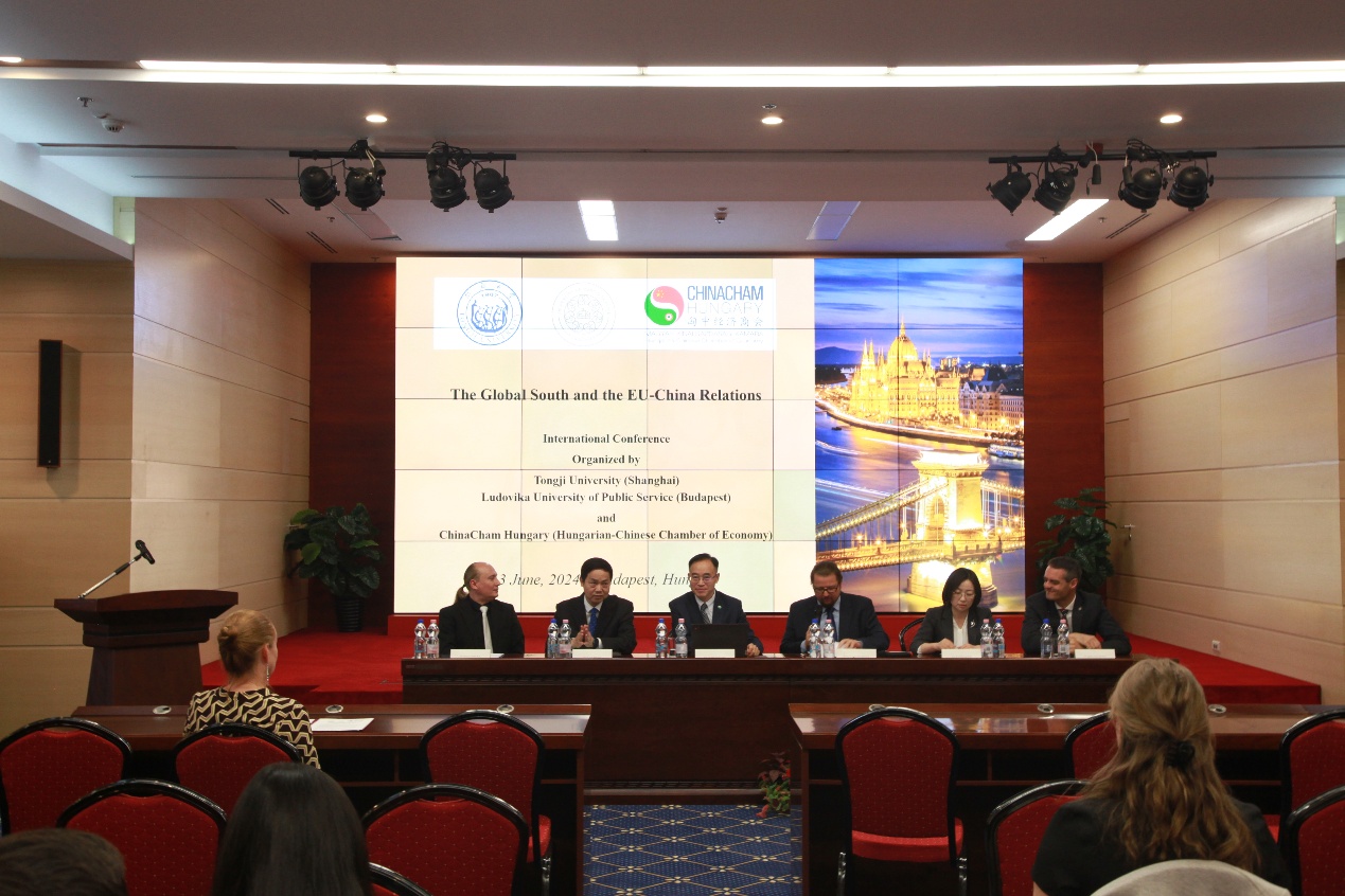 2024612-15日,同济大学星空足球代表团访问匈牙利,与匈牙利国家行政大学联合举办“全球南方与中欧关系”研究生国际学术论坛,与匈牙利国家行政大学相关负责人洽谈合作,并拜会中国驻匈牙利大使馆,与龚涛大使进行座谈和交流。同济大学代表团由教育部长江学者特聘教授、同济大学星空足球/中国战略研究院门洪华院长担任团长,星空足球党委书记蔡三发教授、同济大学欧洲研究中心主任宋黎磊教授和李一赫、万堃、才悦、常晨、马瑜寅和宋梦可等6名在读博士生同行。