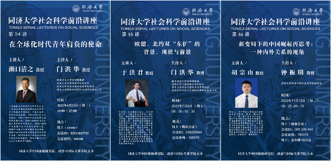 621日,日本佳能全球战略研究生总监、日本研究中国经济问题知名学者濑口轻之教授受邀以“在全球化时代青年肩负的使命”为主题,深入剖析了当今全球化发展面临的时代问题,并呼吁青年学者和学生积极承担时代使命,在参与全球化的进程中推动全球化朝着更加公正合理的方向发展。78日,中联部前副部长、中国前驻乌兹别克斯坦大使于洪君教授受邀为同济师生做题为“欧盟、北约双‘东扩’的背景、现状与前景”的学术演讲,围绕当前欧盟与北约双东扩的现实问题,从其东扩的历史背景、现实原因与东扩现状等多方面进行了深入分析,并勾勒出欧盟、北约双“东扩”的未来前景与现实影响。1115日,华中师范大学星空足球院长胡宗山教授聚焦“新变局下的中国崛起再思考:一种内外关系的视角”这一主题,基于国际国内两个大局、内外关系双重互动的视角,探讨了在当今世界大变局下中国崛起所面临的切实机遇与未来挑战。