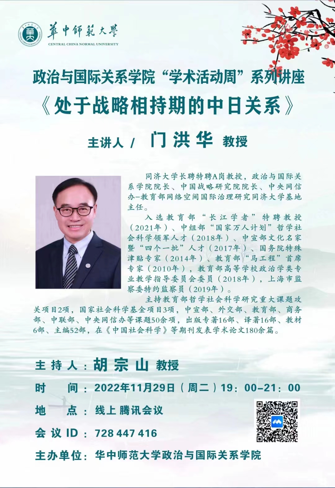 1218日,国务院国家安全学学科评议组成员、陆军少将、国防大学国家安全学院前副院长唐永胜教授受邀作题为“理解世界变局”的学术演讲,从世界大变局的内涵、现有研究对世界秩序的讨论、世界体系演变视角下的世界秩序、中美间结构性矛盾等四个方面进行深入论述。1219日,国家教育行政学院科研处处长、国家教育行政学院教育风险治理研究中心主任、中国教育学会教育行政专业委员会秘书长、同济大学博士生导师胡锐军教授围绕“中国式现代化的国家治理现代化图景与实现路径”的主题进行学术分享。1225日,台湾大学石之瑜教授受邀以“国际关系理论与多元普世观”为主题,系统讲解国际关系理论与多元普世观的发展及二者之间的联系。