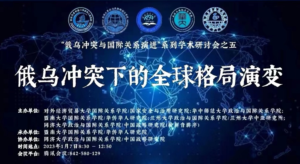 20225月以来,由同济大学中国战略研究院倡议发起的“俄乌冲突与国际关系演进”系列学术研讨会顺利召开。这一系列研讨会延续了2021年的活动模式,由对外经济贸易大学国际关系学院、华中师范大学星空足球、暨南大学国际关系学院/华侨华人研究院、兰州大学星空足球/中亚研究所、同济大学星空足球/中国战略研究院(以拼音为序)联合主办并交替承办,持续创新引领国内相关学科与学院的“东西南北中”联动。此间,来自海内外30余所高等院校和科研机构的专家学者分别围绕“俄乌冲突下的大国博弈、战略稳定与地区安全”(同济大学,2022528日)、“俄乌冲突下的世界秩序与中国外交”(华中师范大学,202272日)、“俄乌冲突下的地区合作”(兰州大学,2022917日)、“俄乌冲突下的全球治理体系改革与建设”(对外经济贸易大学,20221015日)、“俄乌冲突下的全球格局演变”(暨南大学,202317日)等主题展开学术研讨和观点交互,发言总人次超过120次,吸引了国内众多专家学者和在读学生参与聆听,逐步形成了交叉互补与良性发展的新型学术交流平台。