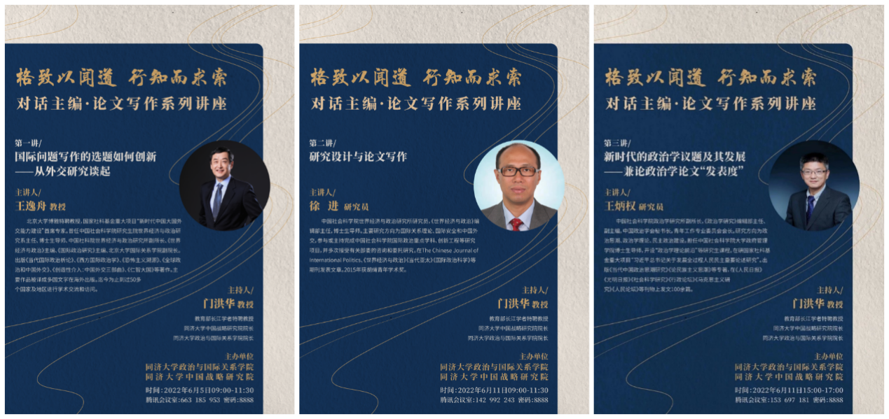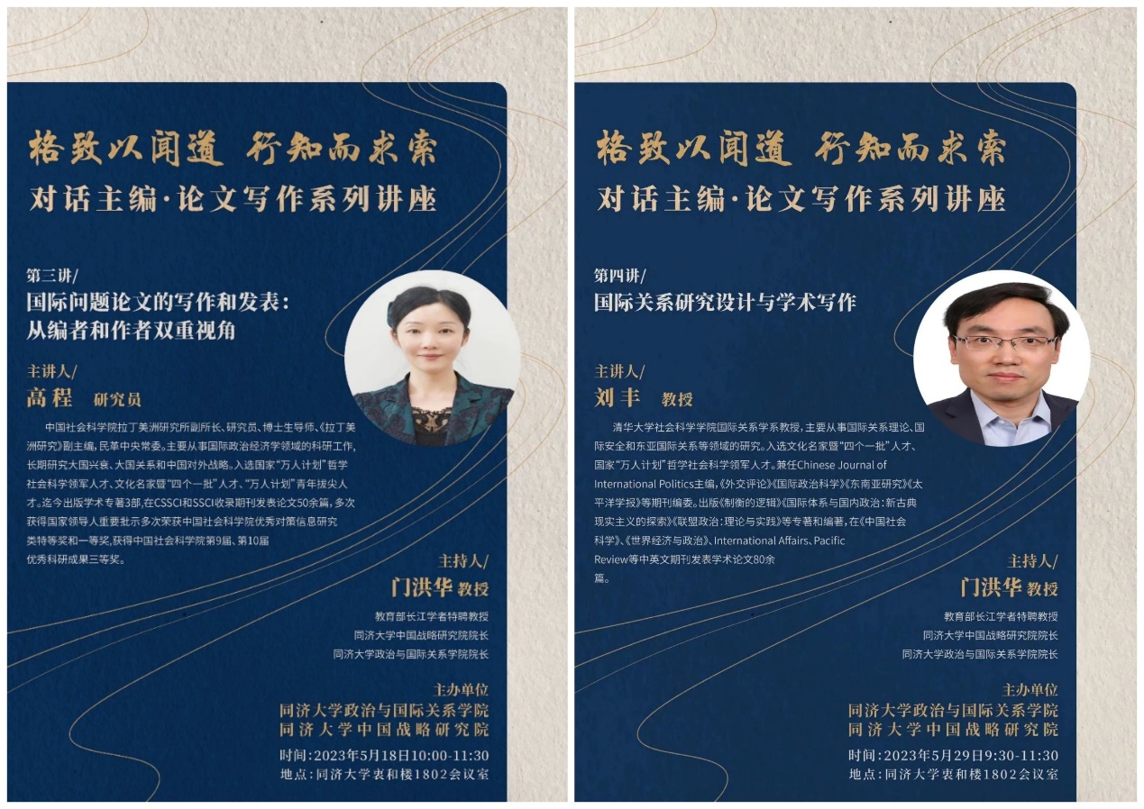 立足科研需求,对话一流主编,助力闻道求索。2023年,同济大学中国战略研究院持续举办“格致以闻道 行知而求索”对话主编·论文写作系列讲座,不断强化中青年教师和在读学生的论文选题意识与写作能力。518日,中国社会科学院拉丁美洲研究所副所长、研究员、博士生导师、《拉丁美洲研究》副主编高程研究员以“国际问题论文的写作和发表:从编者和作者双重视角”为主题,从作者和期刊编辑的双重视角,围绕学术论文的内容构成、期刊投稿的注意事项、学术情怀的培养等方面展开讲解。529日,清华大学社会科学学院国际关系学系刘丰教授围绕“国际关系研究设计与学术写作”的主题,结合自身的学术经历,系统总结了国际关系领域学术写作的要点。