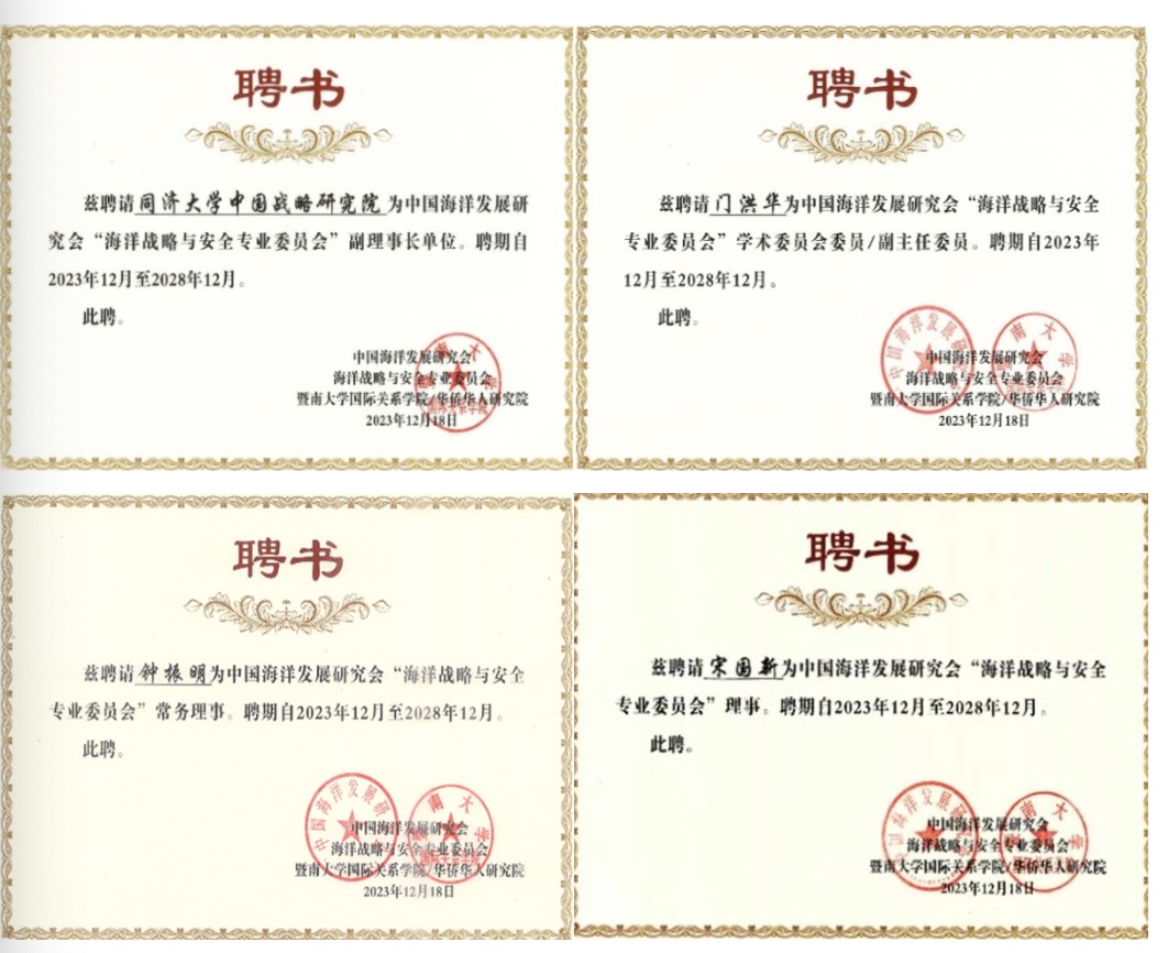 20231220-21日,中国海洋发展研究会海洋战略与安全专业委员会换届大会暨“中国周边安全与南海和平”高端论坛在广州举行,门洪华院长应邀请出席,钟振明副院长和博士后宋国新等参与论坛会议交流。在1220日的中国海洋发展研究会海洋战略与安全专业委员会换届大会上,同济大学中国战略研究院当选中国海洋发展研究会海洋战略与安全专业委员会副理事长单位,门洪华教授当选中国海洋发展研究会海洋战略与安全专业委员会副理事长和学术委员会副主任委员,钟振明教授当选常务理事兼副秘书长,宋国新博士当选理事,在1221日举行的“中国周边安全与南海和平”高端论坛上,门洪华院长就美西方“泛安全化”与中国战略应对发表主旨演讲。
