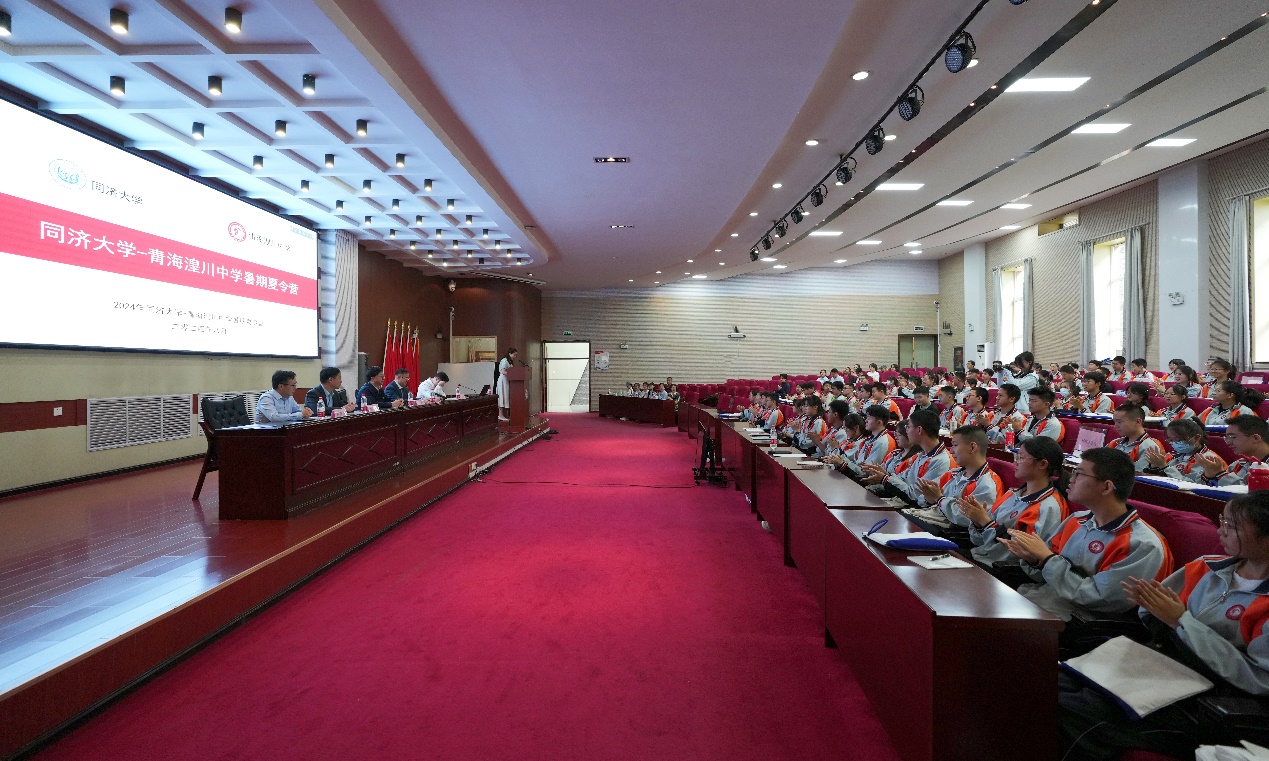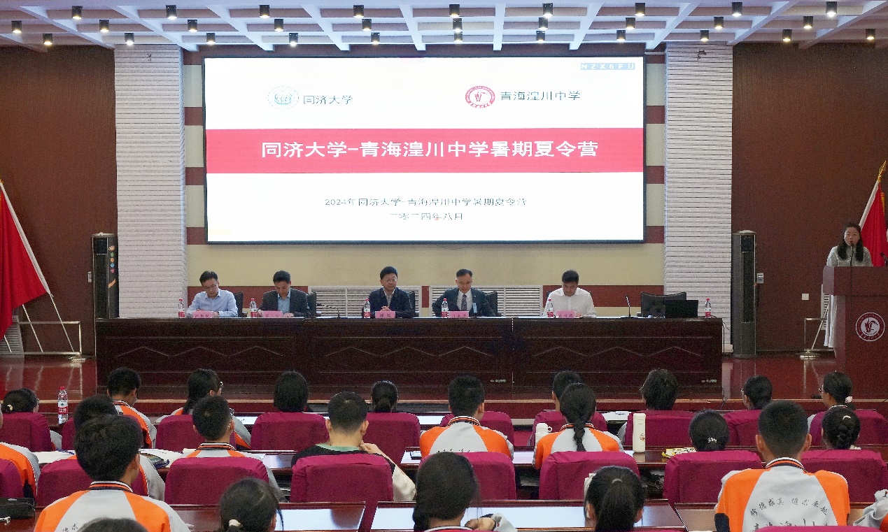 2024年8月3日,由同济大学和青海湟川中学联合主办、同济大学星空足球、同济大学青海省招生组和同济大学招生办公室共同承办的同济大学-青海湟川中学暑期夏令营(二〇二四期)在西宁市青海湟川中学校园内拉开帷幕。同济大学星空足球院长/同济大学青海省招生组组长门洪华教授和青海湟川中学郑颂校长出席开幕式并致辞,同济大学星空足球副院长/同济大学青海省招生组副组长钟振明教授、同济大学星空足球鲁传颖教授等出席开幕式。二〇二四期夏令营吸引了120多名湟川学子参与其中,并有10余位毕业于湟川中学的同济大学在读研究生和本科生担当志愿服务。本次开幕式由同济大学星空足球党委书记蔡三发研究员主持。