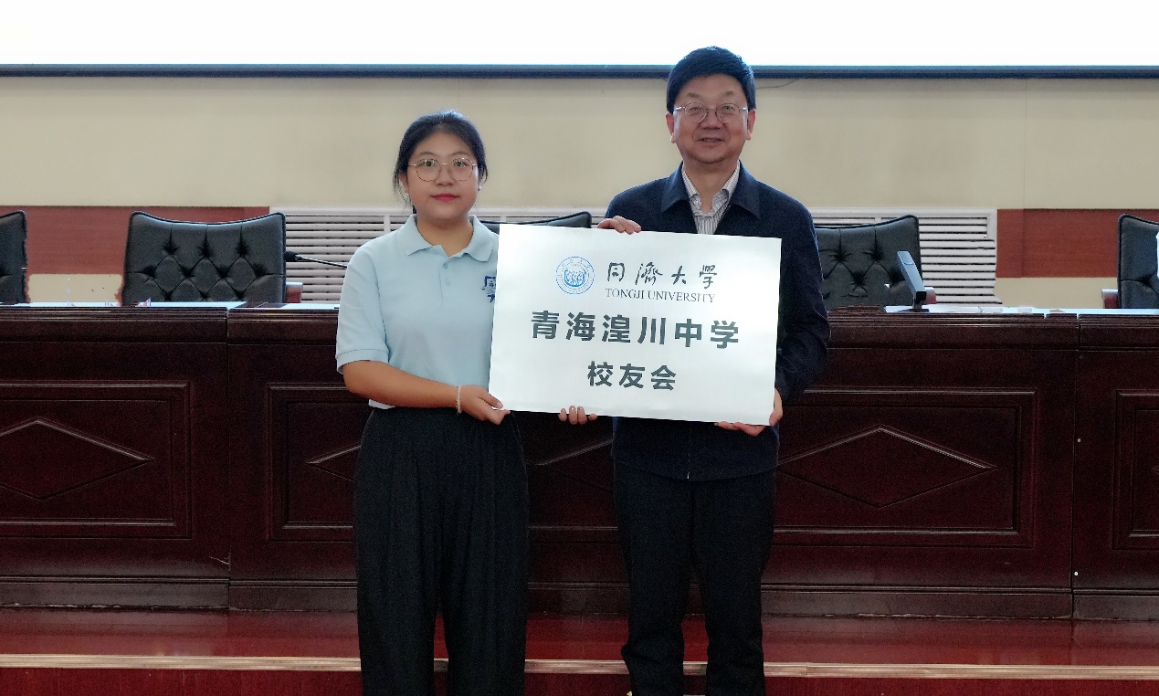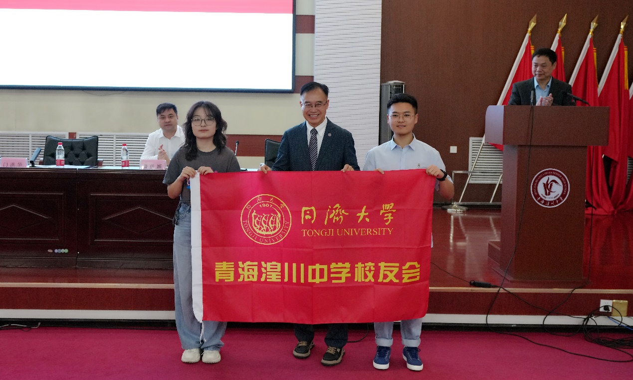 在此次暑期夏令营举办前夕,经同济大学青海省招生组号召,就读于同济大学的湟川毕业生们自发筹建同济大学青海湟川中学校友会。在此次夏令营开幕式上,郑松校长和门洪华院长分别表达了对校友会的肯定与期许,并在湟川师生们的共同见证下,为同济大学青海湟川中学校友会授牌和授旗。
