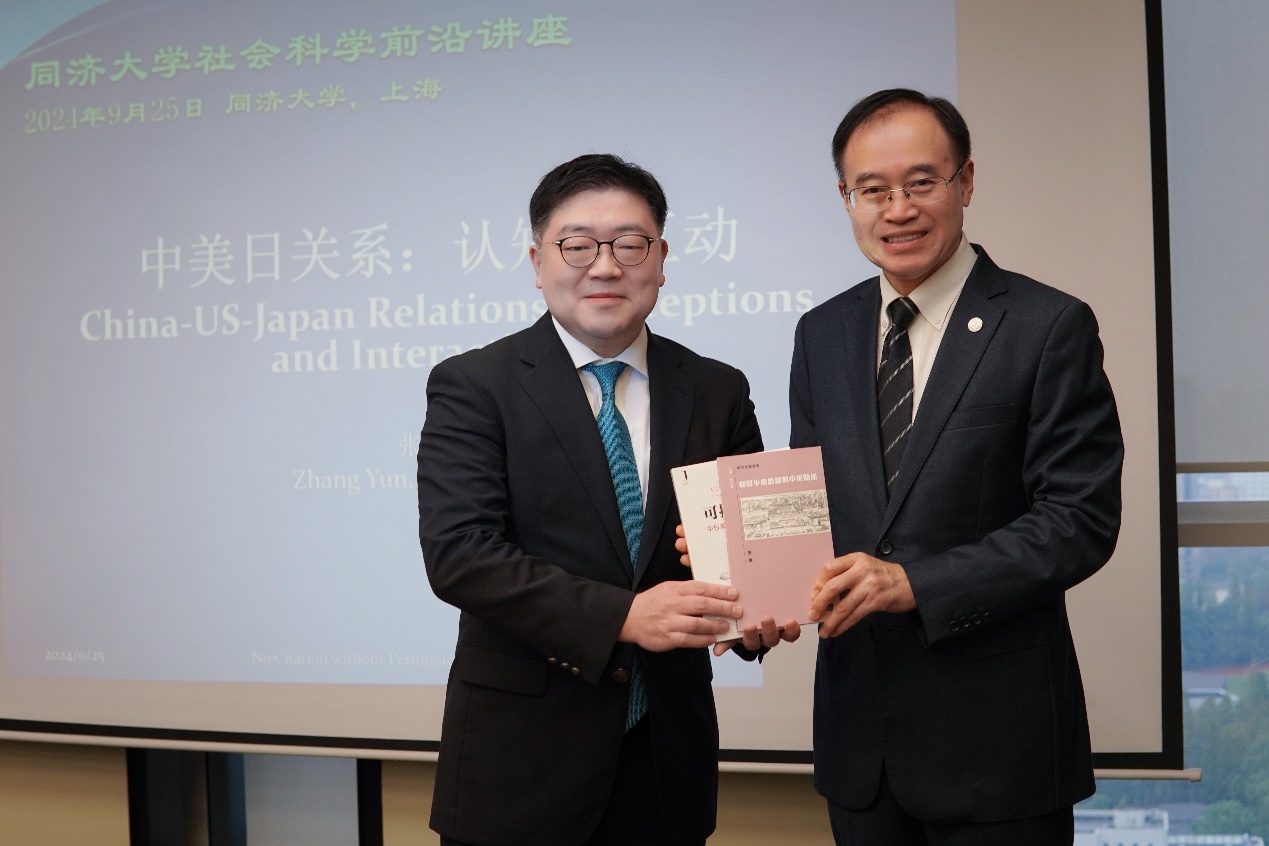 讲座的最后,门洪华教授总结道,张云教授的讲座深入剖析了中美日三国关系的复杂性,为国际关系学者提供了新的研究视角,对未来国际关系领域的理论发展具有重要的启发意义,他指出区域国别研究应注重跨学科的融合,不仅服务于现实需求,还应具有坚实的理论基础。此外,他还鼓励青年学者在学术研究中坚持理论与实践相结合,不仅关注国家之间的互动,也要关注社会认知与文化因素在国家关系中的作用。门洪华教授指出,真正的学术研究一方面要哲学思考和历史探究,找到解决现实问题的钥匙;另一方面还要真正做到脚踏实地,读万卷书行万里路,对观念变动和思想流动有更深刻的把握,感知前沿和潮流。门洪华院长期待张云教授再次莅临同济大学,为众多学子传经送宝。
