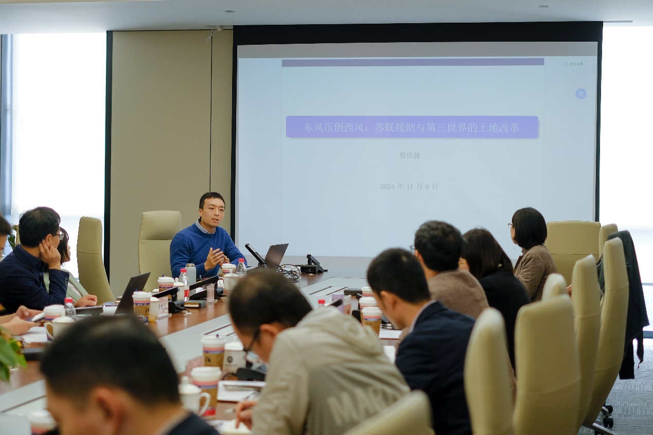 复旦大学国际关系与公共事务学院副教授曾庆捷以《苏联援助与第三世界的土地改革》为题作相关发言。通过具体关注土地改革领域,他研究了大国如何影响发展中国家在发展模式和国内改革的选择。通过研究,他认为苏联援助可以通过规范传播、改变他国政治力量对比、提供改革所需的物质资源这三个渠道促进第三世界的土地改革,指出冷战时期苏联为意图摆脱西方国家控制、快速实现现代化的第三世界国家提供了一个发展模式。非西方国家的援助也可能被理念和信仰所驱使,并推动受援国开启实质性的社会改革。