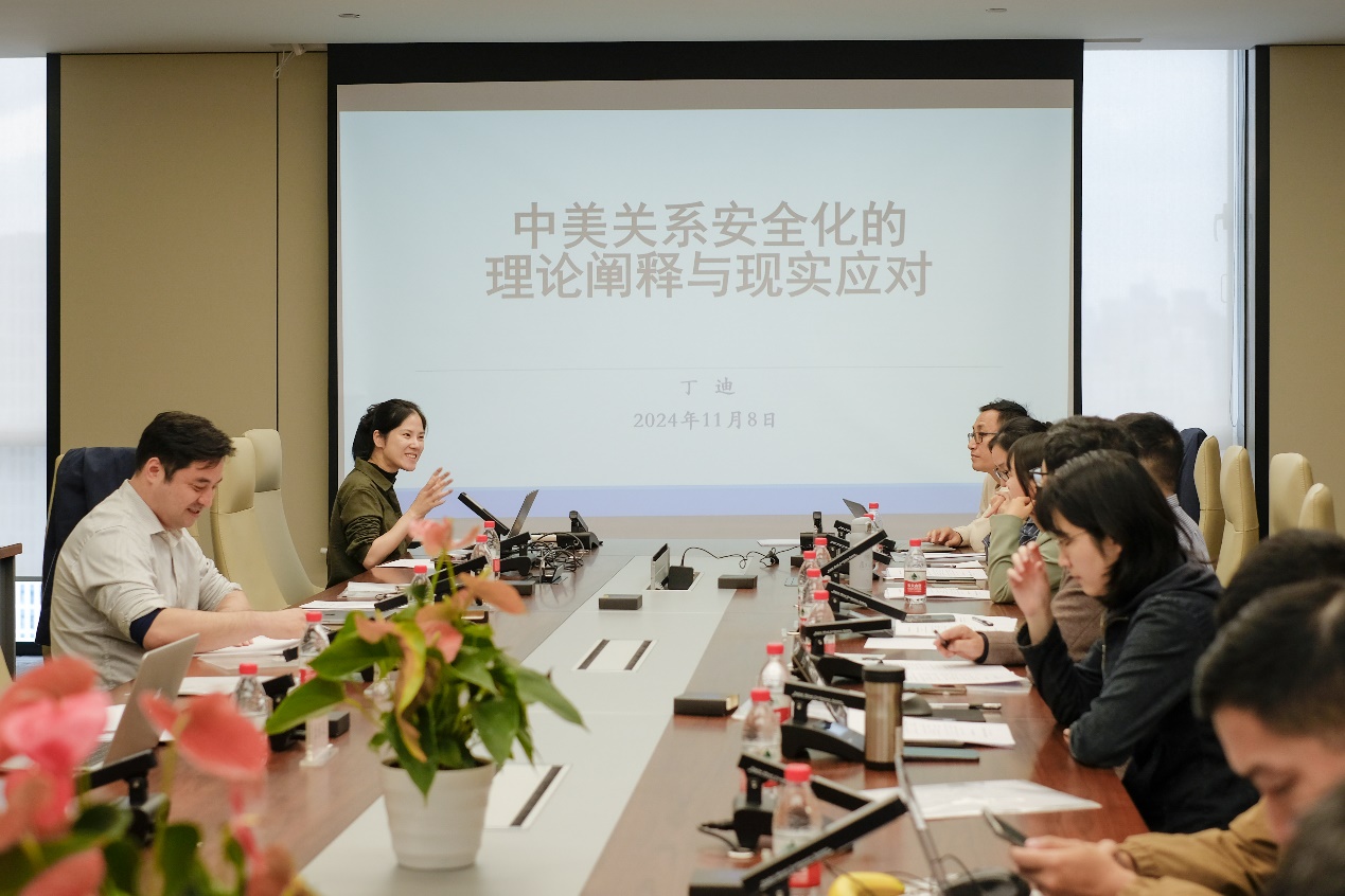 同济大学中国战略研究院丁迪副研究员以《中美大国关系安全化的理论诠释与现实应对》为题作相关发言。她从安全叙事、叙事主体、应对方式等方面比较了巴黎学派和哥本哈根学派的既有安全化模式,其研究构建了一套以环境、动机、路径、互动四要素组成的安全化分析框架,揭示安全化议程对大国关系的影响,上述四要素的表现及相互影响的结果使安全化呈现收敛与扩张两种形态。