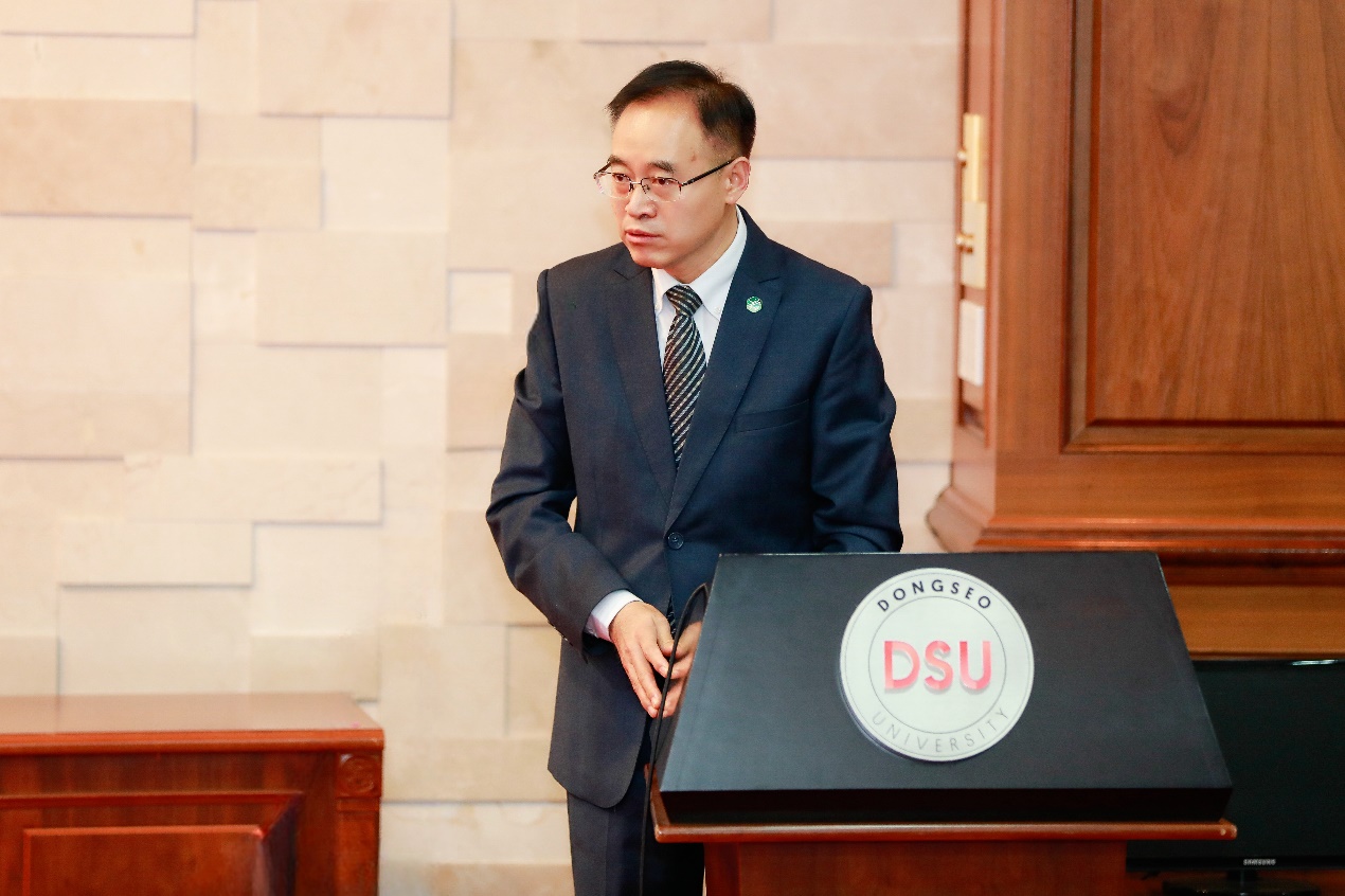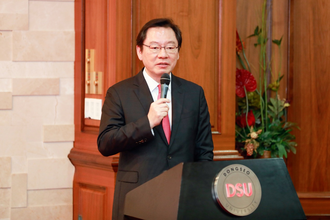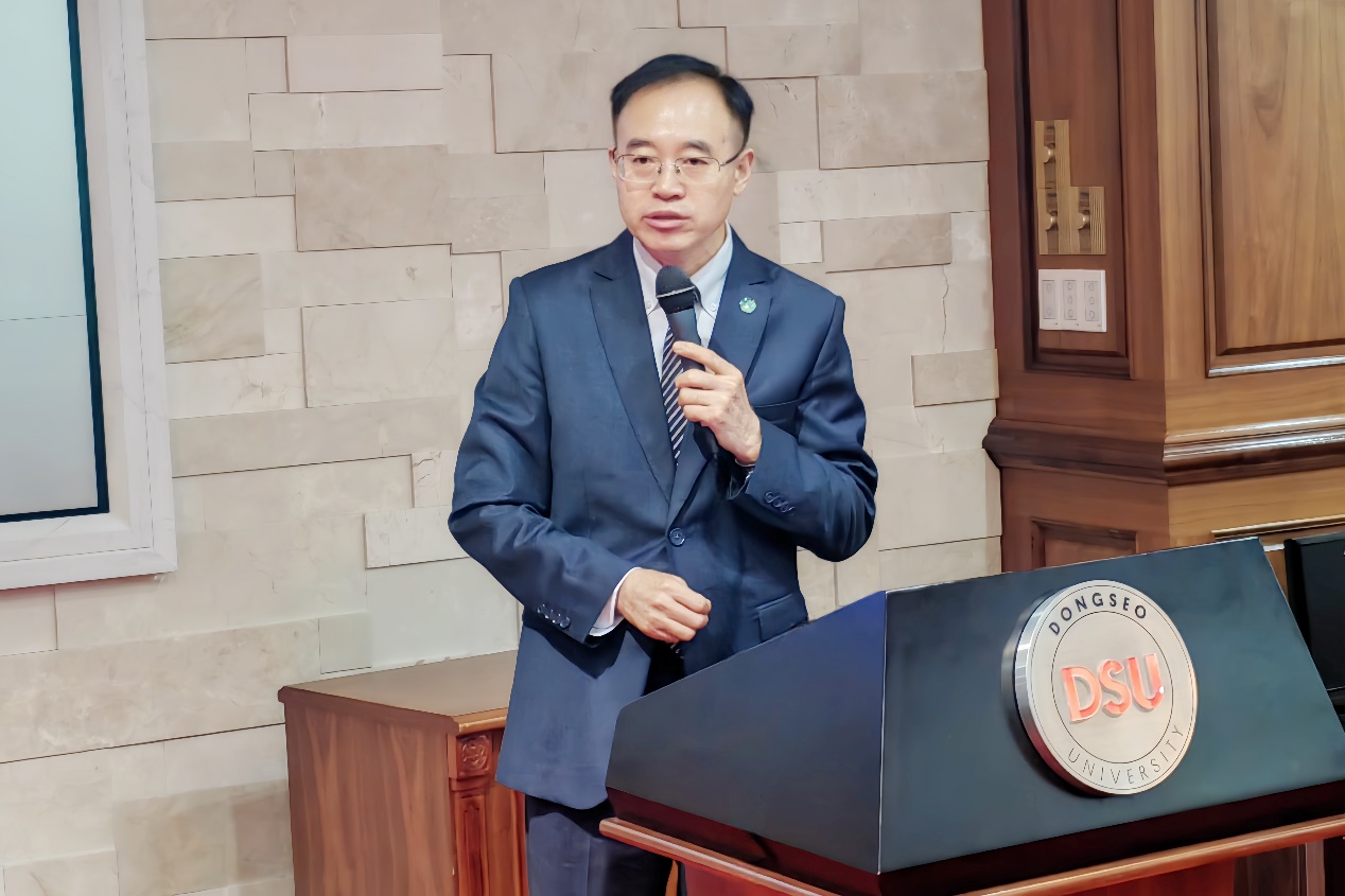 张济国校长在致辞中欢迎来自中韩两国的嘉宾来到东西大学,参加第九届上海釜山合作论坛。他指出,中韩两国自建交以来在各领域展开了卓有成效的合作,而釜山和上海两座姊妹城市也开展了宽领域、多层次的交流合作,成果丰硕。东西大学坚定支持同中方合作,持续举办釜山-上海合作论坛,期待本届论坛会议圆满成功。