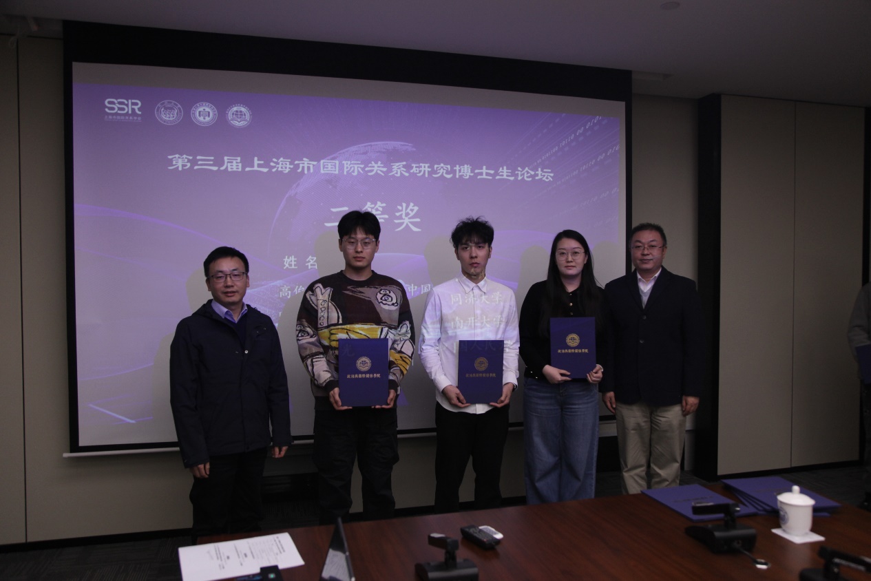 随后,本此论坛进入颁奖环节,颁奖典礼由同济大学星空足球院长助理吕蕊副教授主持。她介绍指出,本次论坛秉持“科学公正、认真负责、严格评审、优中选优”的原则,最终评出一等奖2名,二等奖4名,三等奖5名,优秀奖8名。其中,董佳欣、部彦君荣获第三届上海市国际关系研究博士生论坛一等奖,高俊杰、陈铭辉、刘锦、杜洞光获二等奖,李清扬、刘语默、田绍钧、万堃、周心培荣获三等奖,李航、胡童飞、刘彦彤、李妍卓、黄雪敏、赵新雷、赖爽、李优荣获优秀奖。
