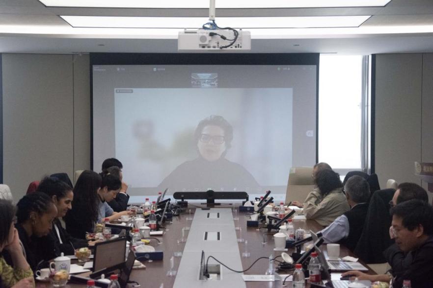 哥伦比亚安蒂奥基亚大学法学与政治学院教授Amaya Querejazu Escobari在线上分享了多元普世主义的两种经验:其一是与来自全球南方国家的学生共同结合其各自经历进行的理论探索,其二是调研中看到的哥伦比亚考卡河流域受矿业影响的社区领袖进行的全球政治谈判与实践。她提出宇宙观为进行多元普世国际关系的思考提供方法论、认识论和本体论的选择,将人的存在、认识和感觉与自然世界联系,以达成理论与实践、个人与世界的一致与归属,实现不同群体间更广泛的共鸣。