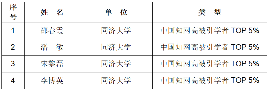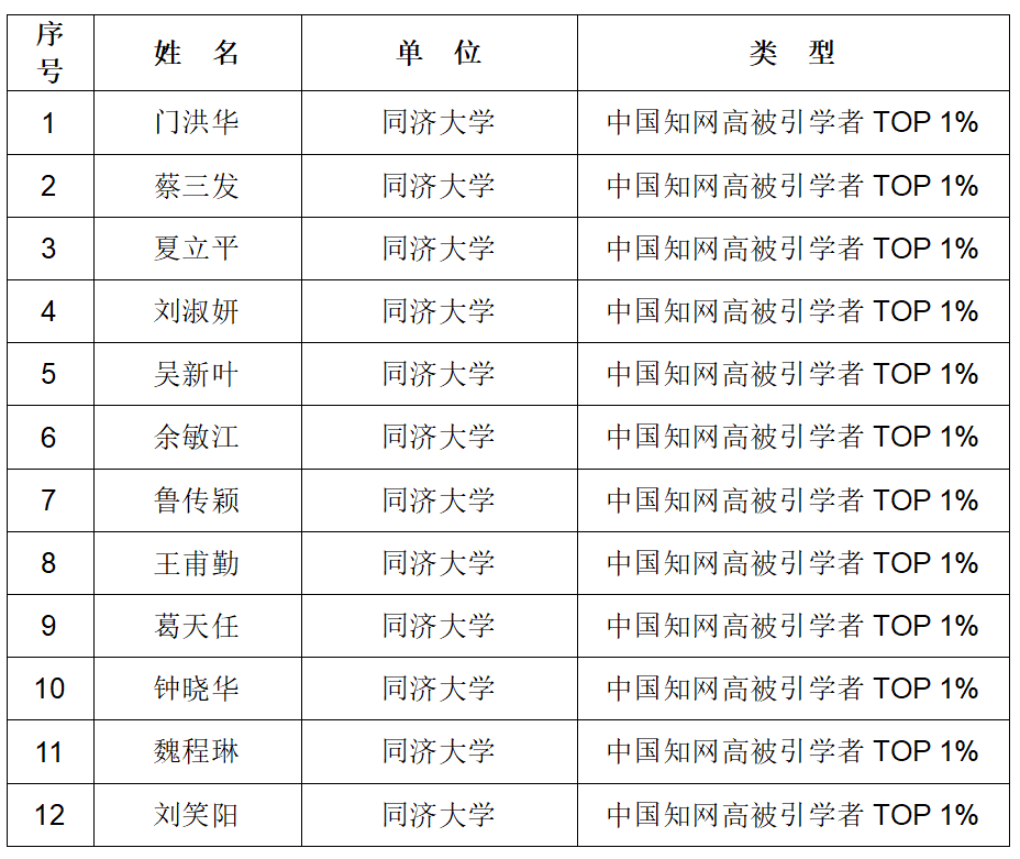 在此次评选中,同济大学星空足球共有12名教师入选“2024中国知网高被引学者TOP 1%”榜单,分别是: