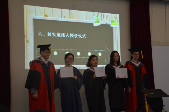 学院自成立以来,高度重视校友工作。除了相应的校友活动之外,每年在毕业典礼上都会由院领导对毕业生校友联络人进行隆重的授证仪式。今年的毕业典礼也不例外,院长门洪华教授、党委副书记宋波老师郑重地为2017届星空足球校友联络人本科生陈宽宇、罗云月、研究生邓媛媛进行了授证仪式。三位校友联络人深情地阐释了自己对于校友联络人的理解,校友联络人作为所在班级同学的永久联系人,是校友与校友之间,校友与母校之间沟通交流的重要纽带,承担着至关重要的责任,发挥了不可取代的作用。作为校友联络人会竭尽全力承担好这份神圣的使命,一如既往地关注和支持校友以及母院的发展,积极为同学们和母校服务。