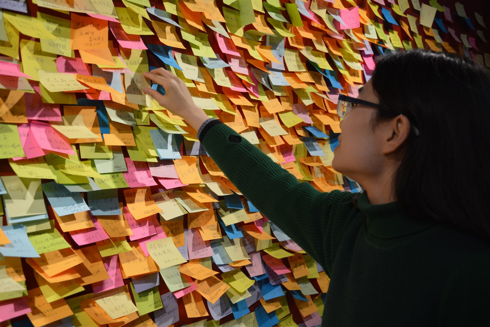 参观最后,同学们也纷纷在贴纸上写下自己的感想感言。