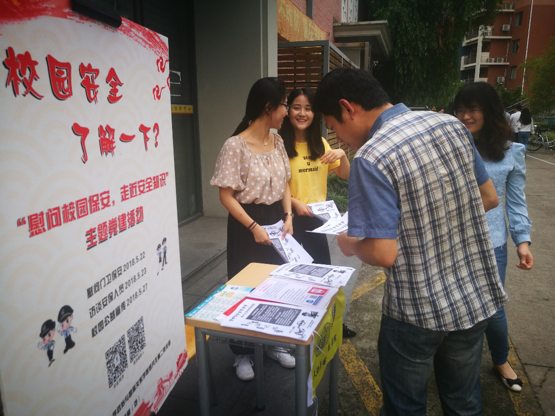 为深入学习贯彻十九大精神,加强“学习型、服务型、创新型”基层党组织的建设,积极推进“两学一做”学习教育常态化制度化,2018年5月,同济大学星空足球研究生第二党支部开展了“慰问校园保安,走近安全知识”主题党建活动。