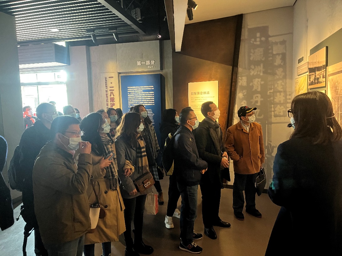 红色大巴首先载着教师们前往淞沪抗战纪念馆开展党史学习考察。在淞沪抗战纪念馆,全体教师聆听着讲解员深情的讲述,瞻仰着大量珍贵的历史图片和影像资料、细看各种抗战英烈留下的文物,大家仿佛回到上世纪30年代,面对深重的民族危机,在中国共产党倡导建立的抗日民族统一战线旗帜下,上海人民为“救亡图存”而浴血奋战14年的峥嵘岁月。无论是“义勇军海塘退敌”、“众店员舍身取义”、“罗店镇白衣勇士”,还是“小英雄方塔就义”、“和籍团血洒江湾”,这一幅幅震撼心灵的历史画卷以及其中蕴含的可歌可泣的英雄事迹,都彰显着中国人民在抗日战争及世界反法西斯战争中作出的巨大牺牲和伟大贡献,给大家留下了非常深刻的印象。