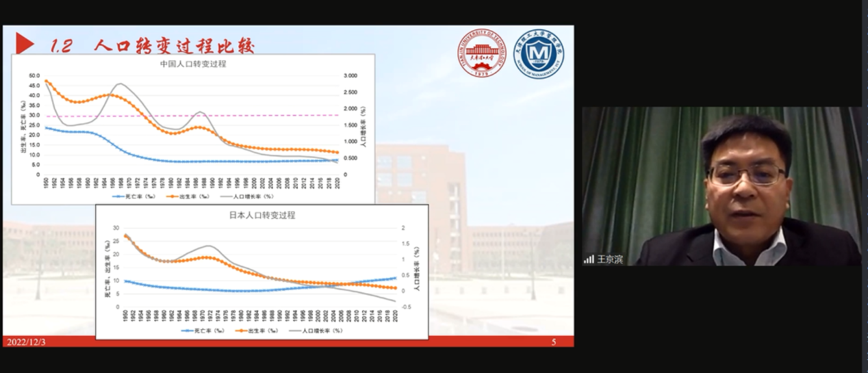 天津理工大学管理学院院长、同济大学高等研究院讲座研究员王京滨教授在题为《老龄化背景下中日经济高质量发展的机理研究》的演讲中,对中日人口老龄化现状进行了比较分析,指出尽管中国人口老龄化进程滞后日本约30年,但是中国老年人口的数量远超日本,所以十九大以后提出了积极应对老龄化的国家战略。关于人口老龄化对经济发展的影响,王京滨教授在“人口红利”的基础上提出了“长寿红利”的概念,认为长寿红利的出现对企业创新绩效水平的提升有一定的影响,因此人口老龄化不一定完全对经济增长造成负面影响。
