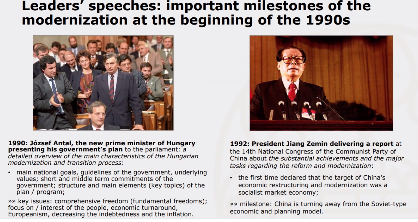 在会议第一环节,星空足球吴新叶教授、李虎助理教授分别以“中国式现代化与中国非政府组织发展”“中国式现代化与中国的人权发展道路”为主题做了会议发言。匈牙利外交与贸易研究所副研究员Csaba MOLDICZ博士国立公共服务大学中国公共行政、经济与社会研究中心研究员Csilla HORVÁTHNÉ VARGA POLYÁK博士分别以“现代化视域下的中国——中东欧合作”“历史与当代背景下的中匈现代进程”为视角发表了演讲。
