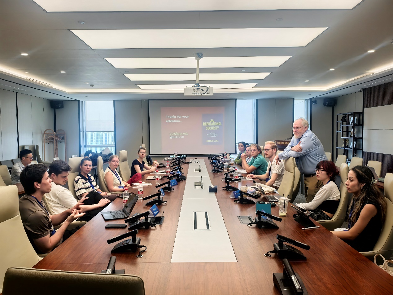 暑期营的第二天上午,南加州大学安纳伯格传播学院的尼古拉斯·卡尔(Nicholas J.Cull)教授为营员们带来了主题为“超越软实力的声誉安全:虚假信息时代的发展议程”的课程讲座。尼古拉斯·卡尔教授从当前世界性危机的表现、声誉安全概念的提出、各国外交战略的布局以及应对虚假信息的建议四个方面展开,介绍了其对于声誉安全的相关研究和见解。