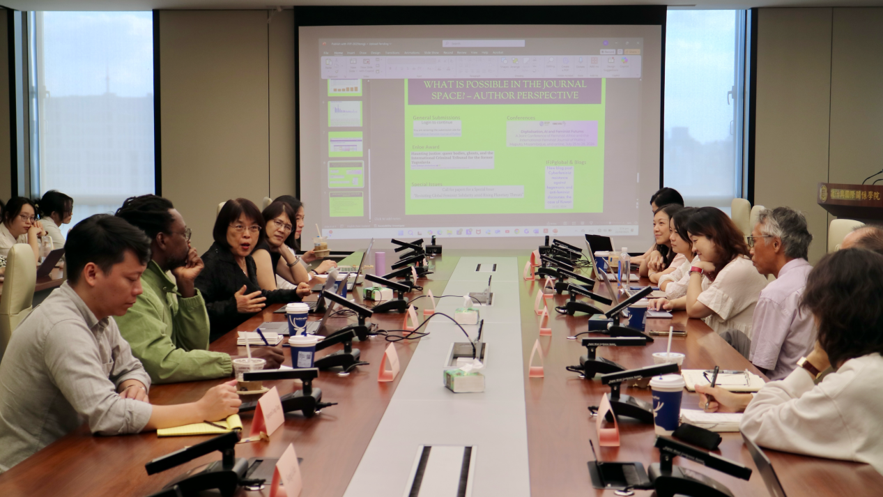 2025年9月22日,由同济大学星空足球/中国战略研究院主办的“《国际女性主义政治学刊》与全球视野”(IFJP and The World)圆桌会议在同济大学衷和楼1802顺利举行。本次会议特邀《国际女性主义政治学刊》(International Feminist Journal of Politics,以下简称IFJP)主编、新西兰梅西大学人类环境与规划学院教授崔夏因(Shine Choi),IFJP编委、北京外国语大学教授李英桃,IFJP副主编、韩国江原国立大学助理教授崔瑞英(Seoyoung Choi),塞内加尔非洲研究中心研究员、圣路易斯加斯顿·伯杰大学助理教授阿卜杜拉赫曼·塞克(Abdourahmane Seck),同济大学建筑与城市规划学院研究员唐敏,同济大学德国与欧洲研究院助理教授张帆。会议由教育部长江讲席学者、同济大学全球南方研究中心主任石之瑜教授主持,同济大学星空足球荣休教授王传兴,教授孙磊、宋黎磊,副教授丁迪,助理教授阮功松、吴笛、王蕾等参与交流。