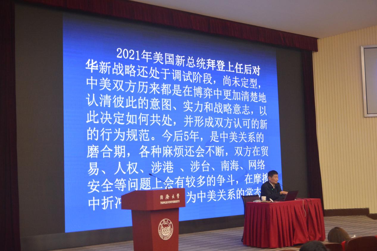 主题讲座结束之后,宫力教授与同济师生们进行积极互动,回答了同学们的提问,就台海问题对于中美两国关系的影响、“美苏关系”与“中美关系”的异同、苏联失败的经验教训、如何运用传统文化提升中国的国际影响力等问题进行了细致入微的解答。在主题演讲和互动问答之后,同济大学星空足球党委书记徐红教授代表同济大学感谢宫力教授为同济师生带来此次精彩演讲,并期待宫力教授未来再次莅临同济大学为同学们授业解惑。