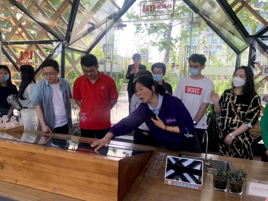 三个支部的师生乘坐观光车参观了滨江风貌,沿江建筑串珠成链,风格迥异:宛如城堡的哥特式厂房——杨树浦水厂,1883年由李鸿章主持成为我国第一座现代化水厂,至今仍为市民供水;行至开阔处,曾经的“中国第一海洋鱼货市场”已被艺术馆取代,书写新的时代发展;而人民城市建设规划馆那别具一格的木质结构,则建立在百年前雄霸上海木材市场的英商祥泰木行原址上,面对着滚滚向前的黄浦江……在讲解员绘声绘色的描述下,党员们得以回望百年沧海桑田,感受着工业锈带化身“生活秀带”背后“人民城市人民建”的力量。紧接着,师生党员走入2019年习近平总书记曾考察过的“人人屋”滨水驿站,工作人员也通过全息沙盘介绍了以跨区域、跨部门、跨行业为特点的智慧党建平台,结合驿站内“文化创意”的主题与一应俱全的便民设施,党员们也对“红色、文化、服务”元素如何切实结合有了新体会。