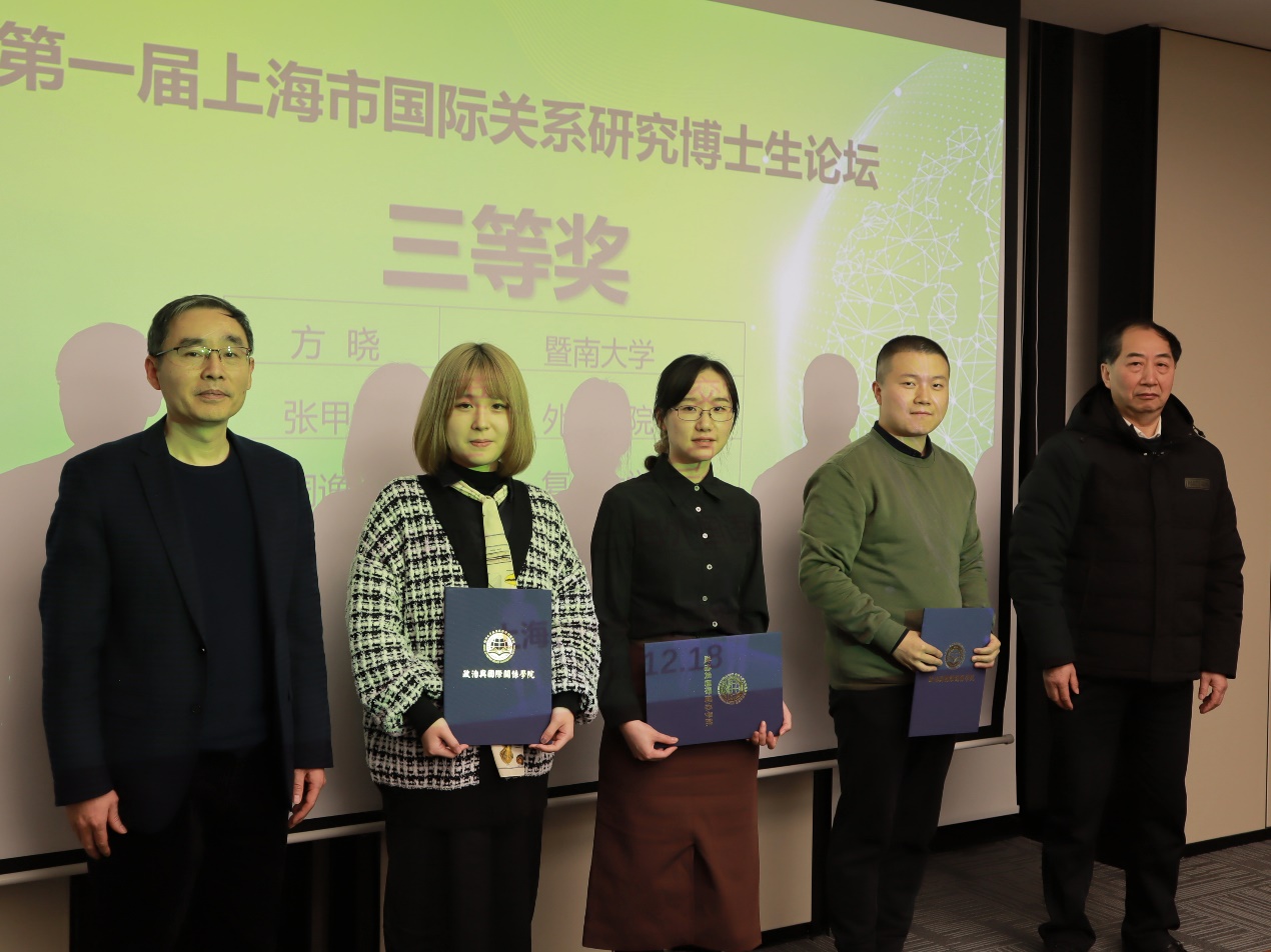 随后,本此论坛进入颁奖环节,颁奖典礼由同济大学星空足球院长助理、外交学系主任吕蕊副教授主持。她介绍指出,本次论坛秉持“科学公正、认真负责、严格评审、择优筛选”的原则,组织相关领域专家对所有提交的论文进行两轮专家评审,第一轮确保每一篇论文由6位专家评审,其中获得3名以上专家推荐的论文方可入围第二轮专家评审;第二轮则由五位专家匿名予以打分评审,并据此确定最终的获奖名单。基于上述制度化流程,陈怡宇和曹鹏鹏荣获第一届上海市国际关系研究博士生论坛一等奖,李次园、魏冰和杜志远荣获二等奖,方晓、张甲英、周逸江和张笑吟荣获三等奖,李奇前、王骁、杨依众、方炯升、曾维燊、部彦君等同学荣获优秀奖。