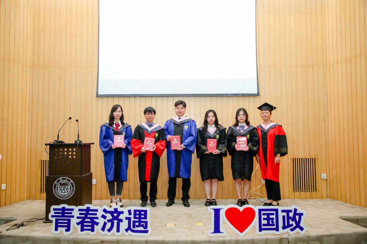 在毕业生代表发言环节,本科生代表冯骏鹏同学感谢国政学院全体老师教授广博的学术知识和严谨的治学态度,相信各奔东西的同济国政人会不负时代、不负韶华,与国同修远志、从政济扬新舟,让青春在火热实践中绽放绚丽之花;硕士生代表谭帅同学提到母校、学院已成为大家的精神家园、心灵港湾与情感依托,会始终将老师们的谆谆教诲铭记于心,以青春之我、奋斗之我开拓人生、奉献社会,干干净净做人、认认真真做事、踏踏实实做学问;博士生代表俞钦文同学表示学习与进步是永恒的主题,正是学院教会自己与学习为伴、与时间为伴、与卓越为伴,能够坦然面对成功与失败,并将学术研究作为终身事业矢志奋斗。