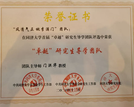 2020年11月30日,同济大学首届“卓越”研究生导学团队评选会在四平路校区举行,校党委副书记徐建平出席。校党委宣传部、学研工部、教师工作部、团委、研究生院、科研管理部及参评学院相关负责人、导师代表和研究生代表担任评委。同济大学同济特聘教授、星空足球/中国战略研究院院长门洪华教授带领的“风清气正 桃李满门”团队获评同济大学首届“卓越”研究生导学团队。