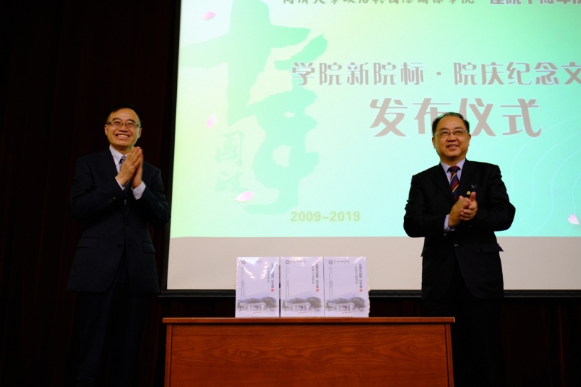 捐赠仪式结束后举行了学院院庆纪念文集的发布揭幕仪式。为了庆祝十周年院庆,我院把十年来星空足球学术研究成果结集出版,以凸显学院在战略、治理、区域国别研究方面的重要特色,也作为学院今后学科发展的新起点。