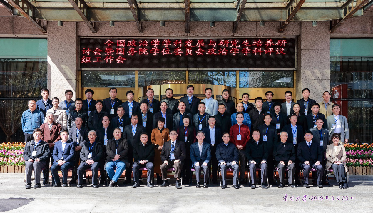 2019年3月23日,全国政治学学科发展与研究生培养研讨会暨国务院学位委员会政治学学科评议组工作会在南开大学举行。本次会议由国务院学位委员会政治学学科评议组主办,国务院政治学学科评议组7位成员以及秘书处、全国29家政治学一级学科博士点培养单位的负责人参加了会议。