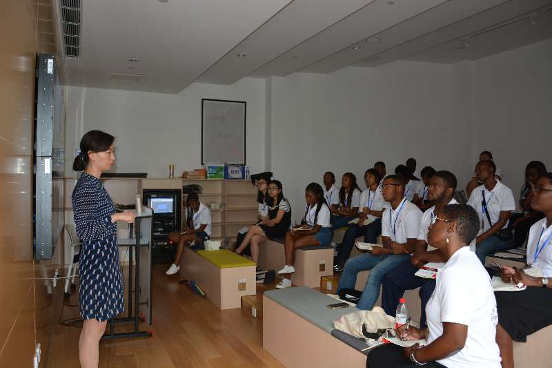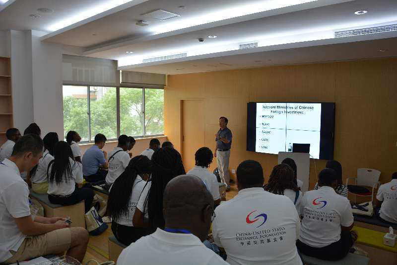上午9点,学生们到达中德大楼德文图书馆,开始了第一天的课程学习。当天的两门课为“中国文学传统”和“中国对外投资”,分别由来自上海科学院的潘玮琳老师和来自复旦大学的宋国友老师进行授课。第一节课上,潘玮琳老师系统地向美国学生们讲述了中华文化的基本知识,从汉字的形成与演化,到先秦时期百家争鸣的灿烂文化,再到对中华民族的精神文明影响颇深的各家著作,每一部分都引起了同学们极大的好奇心。同学们尤其喜欢《诗经》所描写的传统中国精神内涵,并在潘老师的带领下朗读、赏析了《关雎》等《诗经》名篇。
