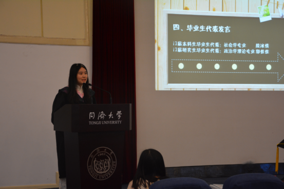 研究生代表郭佳佳代表全体研究生毕业生发言