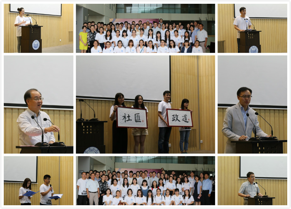 每年金秋时节,学院都荣幸地迎来了朝气蓬勃的新生,为学院的建设发展注入了新鲜血液。学院在开学典礼之前特意准备了写有“政道”和“社汇”的牌匾,希望藉由开学典礼这个隆重的时刻,通过牌匾传承仪式,将学院对各位新国政人的期待一级级地传承下去。所谓政道,即通晓为政之道,积累为政之才,谨记为政之要,意味着我们的政治学的学生要学好专业知识,领悟政治学的精神。所谓社汇,即洞察社会百态,汇聚社会贤才,共谋社会发展,正道出了社会学专业的真谛。