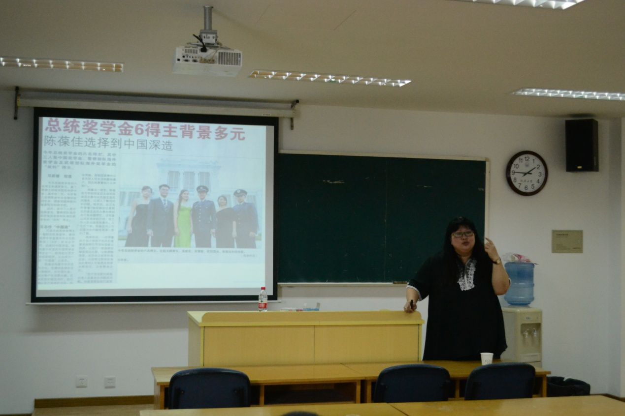 傅老师首先询问学生对于新加坡的公共行政所存在的疑问,并将从整体上展开话题。傅老师指出,新加坡与中国的体制不同,但在处理很多问题上与中国的理念和方法是相似的。因此有着很大的交流空间。傅老师主要从新加坡的政府组织结构、公务员招聘、公务员薪金、公务员精英制度、公务员管理等五个方面对新加坡的公务员制度进行详细的讲解。首先,傅老师讲到了新加坡的公务员没有中央官员和地方官员之分,从公务员的人数、年龄、学历等方面讲述了国家各部门组织架构和公务员的分布状况。随后,傅老师以自己的亲身经历讲述了公务员的遴选过程,需要对个人的各个方面进行严格的审查,甚至包括心理测试和道德价值观的考量。在谈到大家最关心的新加坡公务员薪资方面,傅老师强调,新加坡并不是高薪养廉,相反公务员的薪资与社会诸多职业相比显得很少,甚至近年来政府的高级官员的薪资还持大幅降低趋势,,公务员的清廉同时也是来源于严格的奖惩机制。最后,傅老师讲到了新加坡公务员的精英制度,这是新加坡公务员的一大特色。傅老师讲到,新加坡的公务员从中学时期就开始发掘,政府对优秀学生进行国家培养,因此新加坡的公务员普遍年轻,且高级官员任职十年就得退休,及时更新政府人员。傅老师说:“当国家不能吸引最好的人去做公务员时,国家的发展就会存在问题。”