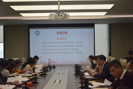 门院长从七个方面介绍学院2020年行政工作进展情况。一是克服疫情压力,提高本研教学质量,大力提升人才培养水平。学院本科教学工作取得突破性进展。学院教学管理制度得到进一步完善,教学管理体系更加成熟,教学秩序和教学效果得到积极提升。学院顺利完成“三全育人”国际视野提升工程项目,本科教改项目建设与落实常态化。政治学与行政学、社会学两个本科专业的校内自评工作顺利完成。研究生教学管理工作取得新进展。研究生学位论文质量得到进一步提升,学院致力于提升学位论文管理的规范性和良好学风的形成,推动形成排查工作的常态化、制度化。二是以党建为引领,以试点学院建设为抓手,助推学生成长成才。学院加强学生党支部制度与机制建设,推进学生党支部特色项目建设,积极引导学生在实践中践行社会主义核心价值观。学院深化辅导员、班主任、导师及专业教师协同育人机制建设。深入推进实践育人、文化育人、精准服务育人工作,积极开展创新实践活动和传承中华优秀传统文化活动,着力推进“学业援助”、“职业发展指导”、“身心素养发展”、“少数民族学生帮扶”等专项工作。由院长、书记和9位女教师组成的“驻楼导师”团队为全方位育人做出努力,成效显著。三是厚植基础,彰显特色,学科建设持续推进,各项评估有条不紊。2020年是同济大学社会科学群一流学科建设的收官之年,学院领衔承担了同济大学一流学科建设“欧洲研究”的终期评估工作,获得与会校领导和专家一致肯定。学院政治学与行政学、社会学两个本科专业迎来校内大考,评估专家组对两个专业培养体系、教研成果、国际交流、培养成效等方面取得的成绩给予充分肯定。学院以稳健姿态从容参与第五轮学科评估,6月就提前布局和启动相关工作,全面梳理评估数据,精心组织评估材料。四是巩固科研重点方向,聚焦科研团队建设,拓展科研合作空间。学院科研成果结构实现从数量到高质量的跨越式转型,获得第八届高等学校科学研究优秀成果奖(人文社会科学)著作类二等奖和三等奖各1项,新增包含教育部哲学社会科学重大攻关项目在内的30余项项目或课题,学院教师发表论文、出版著作成果丰硕,门洪华教授、李滨教授和仇华飞教授荣获同济大学“十三五”科研工作先进个人称号。学院学术活动丰富多彩,举办12期同济大学社会科学前沿讲座,主办或联合主办“全球抗疫与治理”线上学术报告会、“新冠疫情与国际关系”系列研讨会、 “国际环境演变与国家战略走向”论坛、第三届中国青年战略论坛、“对话主编”学术交流会等学术活动。五是服务国家战略需求,加强部委制度化合作,推动智库建设上台阶。学院秉持服务国家重大决策的主动性、自觉性,聚焦治理与战略,持续深化和拓展与中央国家安全委员会办公室、外交部、中央网信办、教育部、发改委、中联部、商务部、人社部等国家部委的联系与合作,积极承接委托课题,受邀参加内部咨询会议,积极提交高质量决策咨询报告,为国家外交战略和经济社会发展建言献策,有多篇决策咨询报告被中央办公厅、中央部委和省级政府部门录用,多篇报告获得中央领导人的肯定性批示,成为外交部、中联部所重点合作的学术机构。同济大学中国战略研究院与学院联袂举办的学术活动继续丰富多彩,同济战略派声名远扬。六是深化双学位项目,推进学生培养国际化,积极推进在线国际交流。近年来,学院在国际学生招生等关键指标上位居全校专业学院前列。学院利用在线方式顺利完成国际双硕士生的答辩等工作,并以线上或线下线上结合的方式,持续开展丰富多彩的国际交流活动。学院继续与韩国、日本等国际合作方开展高端学术交流,联合举办“疫情之后的中日韩合作”国际学术研讨会、“疫情之后的中韩合作”国际学术研讨会、第二届中日经济战略对话、第五届上海-釜山合作论坛等学术活动。七是持续强化制度建设,聚焦制度实施效果,提升学院治理水平。“制度立院”全面落实,制定或修订了学院决策、党建、干部任用、学生管理等领域的多项制度规定。学院积极申报并获批“同济大学依法治校示范学院”建设试点,推进学院治理朝着更加规范化制度化方向发展。学院建立教职工政治理论学习常规化制度,坚持全院大会,学术委员会会议制度,积极推进建立院领导与师生深入交流的沟通机制,建立新冠疫情防控风险防范机制。