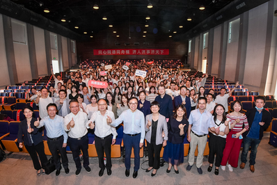 开学典礼结束后,在场师生在129礼堂合影留念。