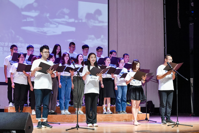 典礼过程中,学院师生还带来了精彩的节目表演。欧华轩、冯俊鹏和朱舒扬同学为我们带来了一曲优美动人的乐器合奏《彩云追月》,钢琴、古琴和古筝的合鸣悠然自得,节奏张弛有度,使音乐在眼前浮现出一幅开阔旷远的画面。大家欣赏了诗朗诵《追光向未来》,同学们铿锵的话语与坚定的眼神倾诉着同济国政学子对未来的希冀与向往,观国政以经世济民,察社会方格物致知,这就是我们的热血与情怀。学院师生合唱《仰望星空》,希望国政学子脚踏实地,心怀梦想,追寻自己的那一片星空。最后一个节目是由孙孟琪、冯骏鹏、汪婷和王雨辰同学带来的原创诗朗诵《同心抗疫》。正如诗歌最后所说的,“无畏汗流浃背或沐露沾霜,国政学子始终充满信心与力量,满腔热血如火般滚烫,国政学子终将撑起民族的脊梁”,国政学子的担当与信念在疫情之下变得更加坚定和滚烫。