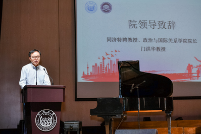 门洪华院长向星空足球全体学生发表致辞。门院长首先代表学院党政班子和全院师生,欢迎新同学加入国政大家庭,也欢迎高年级同学顺利返校。门院长指出,我们当前正处于百年变局与“两个一百年”战略目标相交织的“三个百年”之际,时代变革孕育着政治学科、社会学专业和学院发展的战略机遇。接着门院长介绍了学院近年来取得的里程碑式成绩,2018年1月,学院获得政治学一级学科博士点授予权,2018年7月获批中央网信办、教育部网络空间国际治理研究基地,2019年9月,获得政治学一级学科博士后流动站等。国政学院成功实现了自身发展的站起来,并开始向强起来的新时代迈进。门院长指出了学院的三个定位:一是同济大学文科学院中活跃自信的奋进旗手,二是上海市政治学与国际关系领域的杰出代表,三是全国政治学科备受关注的中坚力量。身处新时代,门院长希望同学们以格物致知、正心诚意为基础,以修身、齐家、治国、平天下为己任,坚持为国为天下的家国立场,以冷静与开阔的视野面对世界的不确定性,秉持洞察历史、立足当下、展望未来的认识路径,锤炼不畏浮云遮望眼的战略思维、纵观天下的国际视野与深谋远虑的战略意识。最后,门院长祝愿同学们在新的征程中勇做新时代的开拓者、奉献者,开启自己的美好人生。