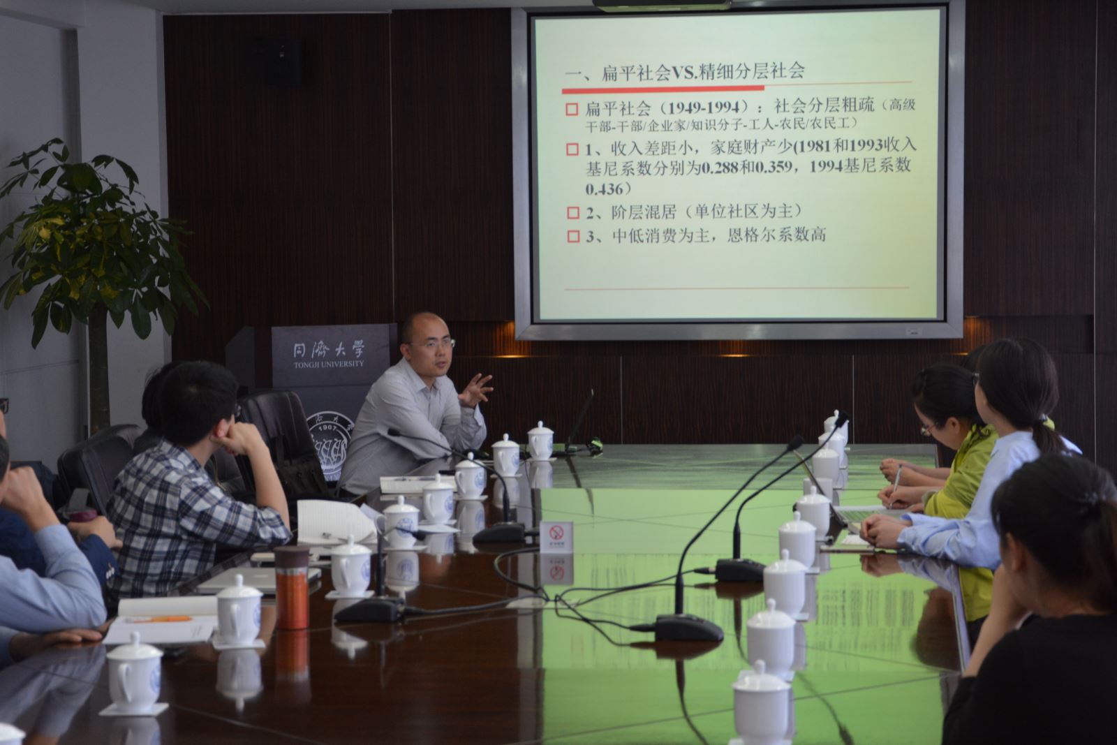 2017年4月19日,由同济大学星空足球、同济大学中国战略研究院主办的“同济大学治理与战略青年工作坊”第三期在逸夫楼113会议室顺利举行。复旦大学国际关系与公共事务学院熊易寒副教授作了题为“从扁平社会到精细分层社会:中国的中等收入群体距离中产阶级有多远?”的精彩演讲。