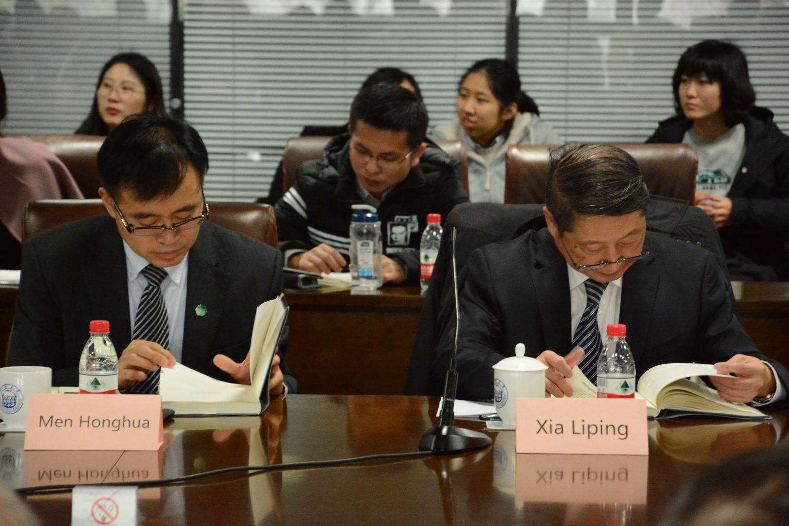 活动的最后,门洪华院长代表同济大学星空足球、中国战略研究院,向两位到访的嘉宾和佩里博士的两个双胞胎女儿赠送了同济大学110周年校庆纪念礼物,佩里先生还自费购买同济大学T恤衫留念。同时,佩里教授向与会师生慷慨馈赠了他最新出版的著作中文版,并热情地为大家签字留念。参与本次活动的教师与同学都表示深受启发,与嘉宾进行了积极而热烈的交流,活动取得了圆满的成功。