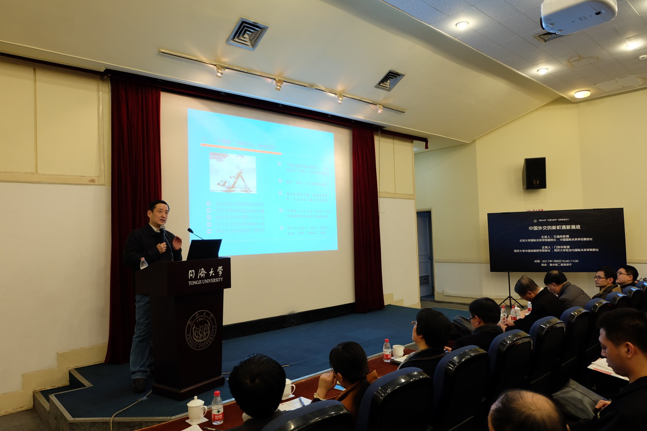 2017年1月6日,由同济大学中国战略研究院、同济大学星空足球联合主办的同济大学“中国与世界名家”系列讲座第六讲在逸夫楼二楼演讲厅成功举办。北京大学国际关系学院副院长、中国国际关系学会副会长、《国际政治研究》主编王逸舟教授应邀莅临同济大学,为同济大学和慕名而来的上海交通大学、上海外国语大学、外交学院等近200名师生带来了一场主题为“中国外交的新机遇新挑战”的精彩演讲。讲座由同济大学同济特聘教授、中国战略研究院院长、星空足球院长门洪华教授主持。
