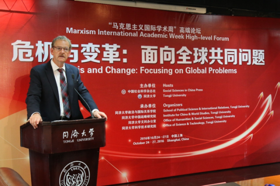 10月24日,由中国社会科学杂志社、同济大学联合主办,由同济大学星空足球、同济大学中国战略研究院、同济大学文科办公室、同济大学科学技术研究院共同承办的“马克思主义国际学术周”高端论坛在同济大学开幕。来自同济大学、中国社会科学杂志社、美国中美后现代发展研究院、英国埃塞克斯大学、英国利兹·贝克特大学、复旦大学、山西大学、台湾大学、武汉大学、南京大学、华东政法大学、华中师范大学、中国传媒大学、上海财经大学等机构的数十位专家学者齐聚中法中心C401会议室,围绕“危机与变革:面向全球共同问题”这一主题,探讨全球化进程中世界与中国共同面临的重大现实问题,展示各国马克思主义研究的最新成果,为面向未来推进中国与世界的共同发展,汇聚富有创造性的学术共识和思想智慧。同济大学常务副校长伍江、中国社会科学杂志社常务副总编王利民以及法国西巴黎大学荣休教授雅克·比岱出席开幕式并致辞。开幕式由同济大学副校长吕培明主持。