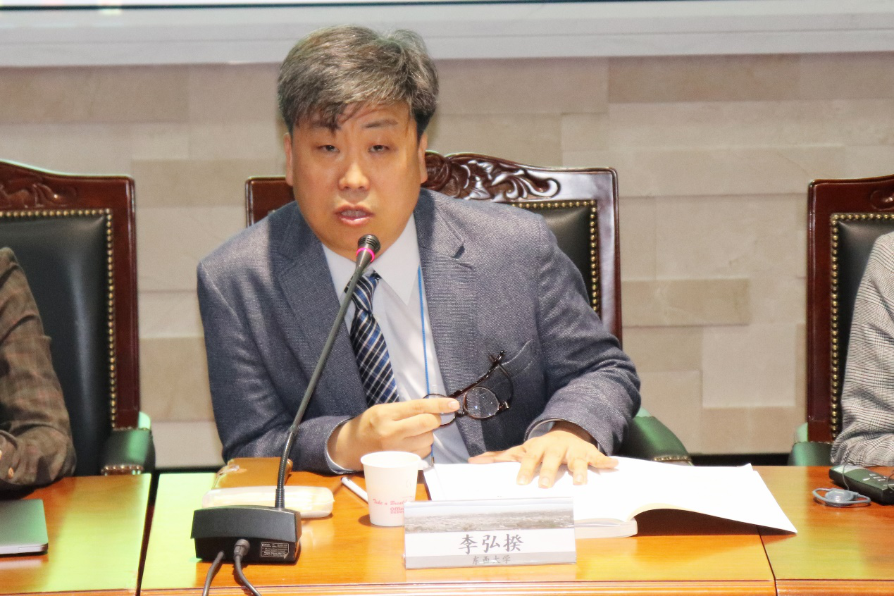 东西大学中国研究中心副所长李弘揆教授主持了第五议题“釜山-上海青年交流”的发言和讨论,发言人有4位来自中韩两国的学生,分别是来自韩国东西大学的尹庚珍、同济大学星空足球的尹钰、韩国东亚大学中国学系的金我贤和同济大学星空足球的刘仪。尹庚珍的发言题目是“在珠海和武汉体验中国文化”,她从亲身经历出发,生动地回顾了她如何消除对社会主义中国的偏见,如何惊叹于支付宝的广泛普及,以及对于中国学生使用互联网科技给韩国学生的文化冲击。对于和中国学生的交往,尹庚珍同学认为,中国学生的民族情感还是比较强烈。尹钰以“上海临港与釜山海云台旅游产品对比”为主题,对上海临港与釜山海云台这两个海滨景点进行了对比分析。上海临港与釜山海云台作为两国重要的港口城市,两者在行业发展状况、区域位置、经济发展程度等都有一定的相似之处。2008年,上海南汇区政府决定将旅游业做为发展区域内服务业的重要内容,上海临港新城作为该区域极具发展潜力的滨海准旅游地,还存在着特色不足、同质化竞争激烈、交通不便等问题。结合市场调研,通过对比釜山海云台的产业发展结构,尹钰同学为临港旅游产业的发展提出了需要加强旅游业方面的法制建设、完善旅游业相关的基础设施、开发特色旅游项目、加强宣传力度等建议。金我贤做了题为“我与中国“的发言,他讲述了其在中国交换的经历,认为在中国的学习交流让自己更加直观的感受到了与书中不一样的、更加立体的中国,中国学生对外国人的开放与热情、中国的技术创新、共享经济等等都令人耳目一新,也消除了自己对中国的偏见。刘仪做了题为“被误读的朝贡体系”的发言。她从问题的提出、文献综述、古代东亚维持和平的内在机理和中国与当代东亚地区秩序建构等四个方面分析和古代朝贡关系问题。她认为,费正清笔下的朝贡体系有着诸如等级制、华夏中心主义、霸权等负面标签,因此造成朝贡体系是中国的霸权建构等负面印象。借助进程建构主义理论,她分析了古代东亚地区维持和平的内在机理,最后得出结论,认为朝贡体系不是中国的霸权建构,而是一个国与国之间和平交往的制度性解决方案。